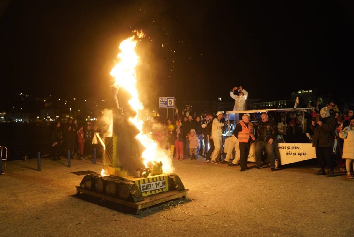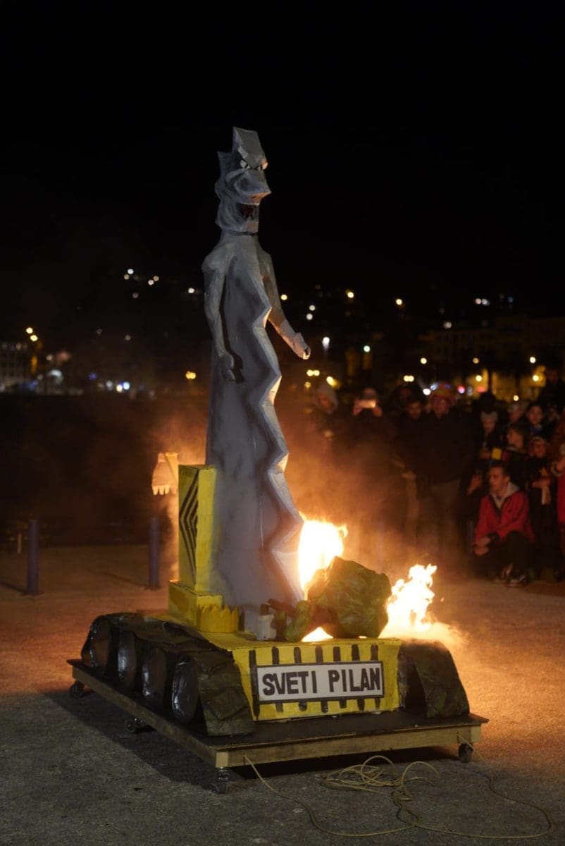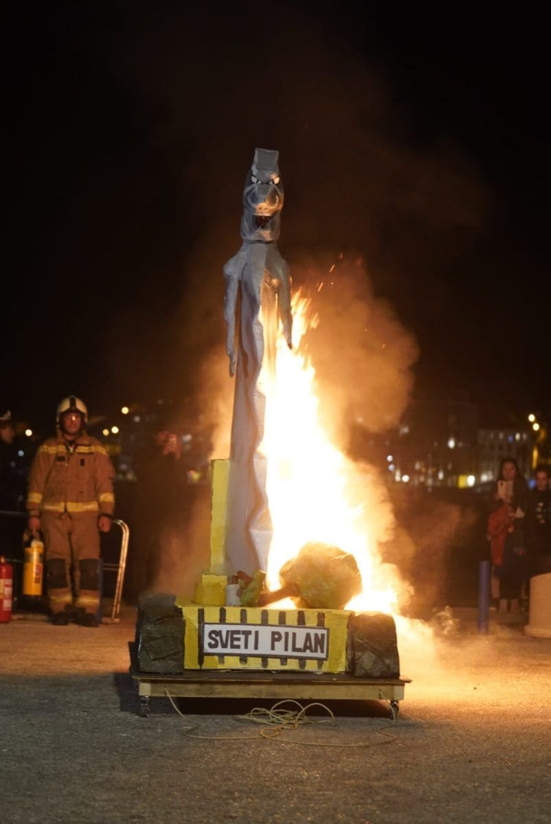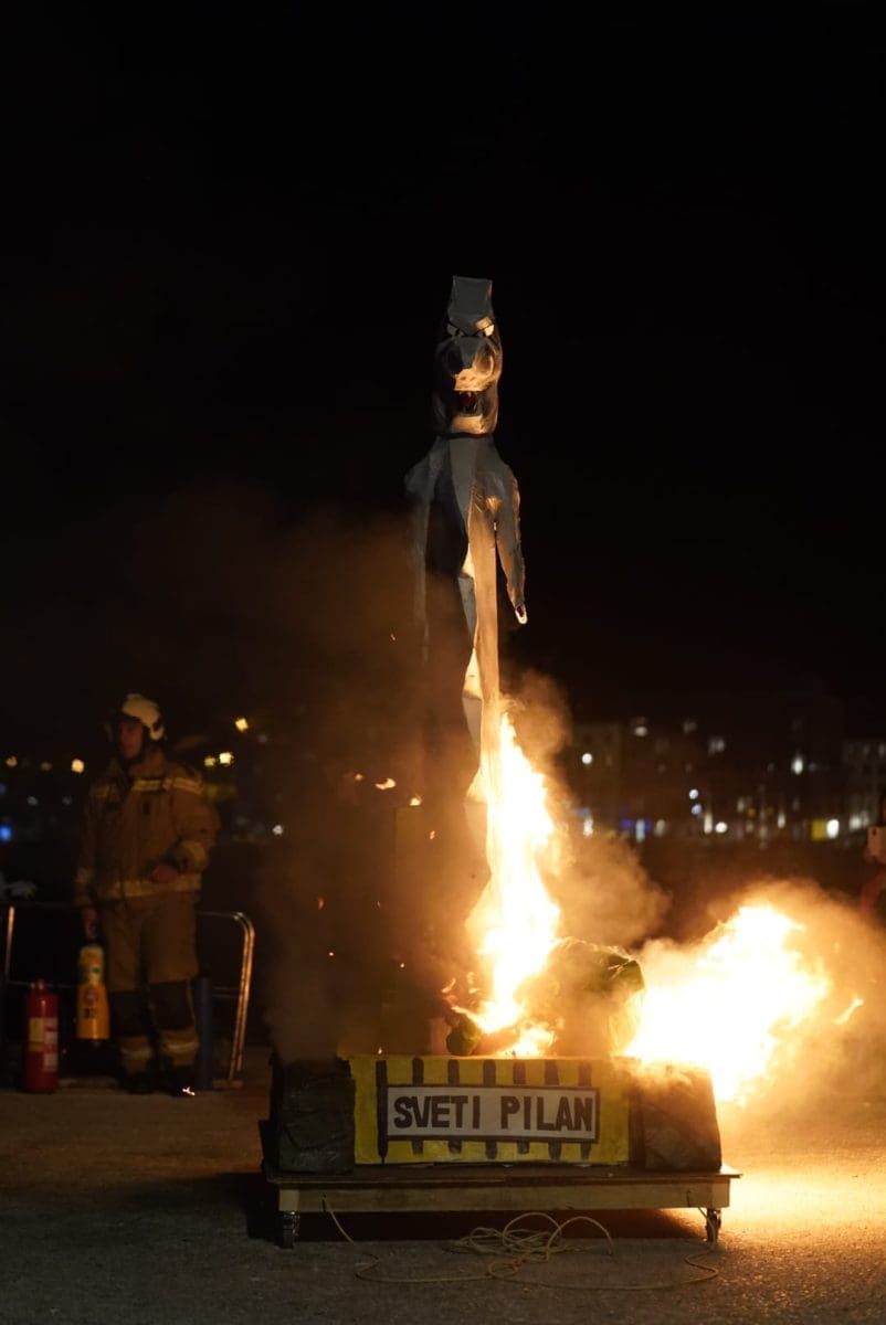 Okupljeno mnoštvo gledalo je kako Sveti Pilan gori, a vatru je dodatno potpirivao vjetar.