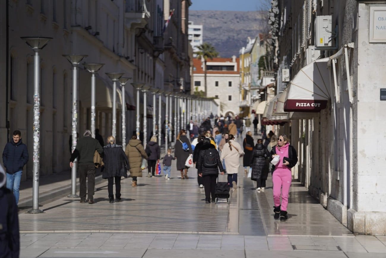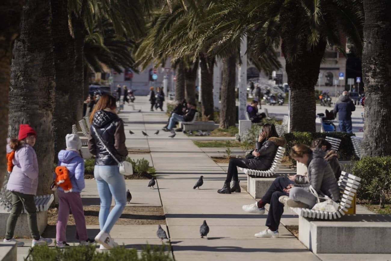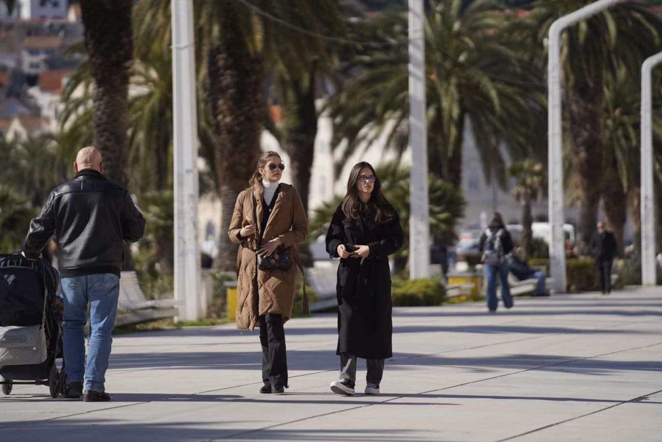 Dok se dio Dalmacije jutros smrzavao na debelim minusima, u Splitu je ipak izašlo sunce koje je ugodno grijalo one koji su se odlučili na šetnju centrom grada.