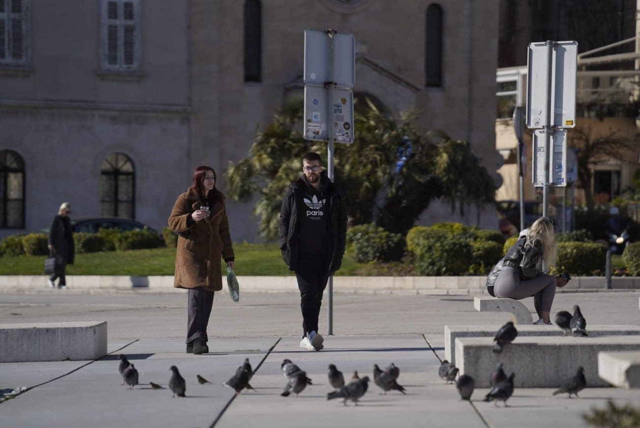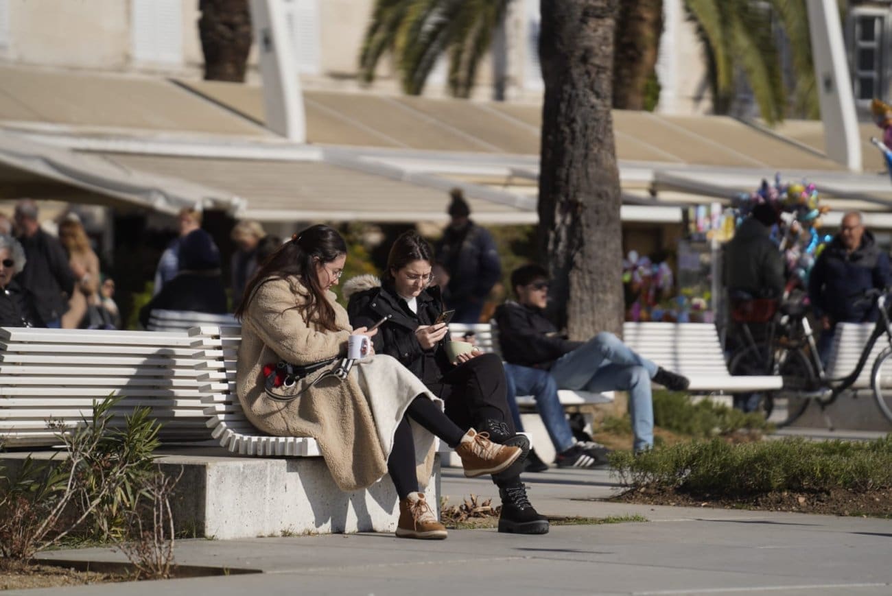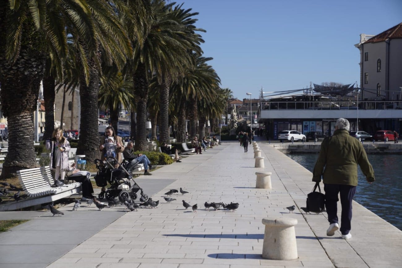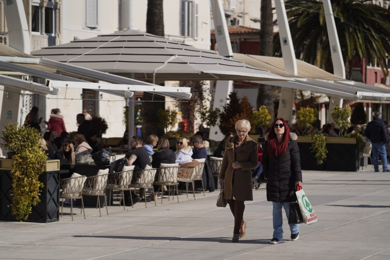 Dok se dio Dalmacije jutros smrzavao na debelim minusima, u Splitu je ipak izašlo sunce koje je ugodno grijalo one koji su se odlučili na šetnju centrom grada.
