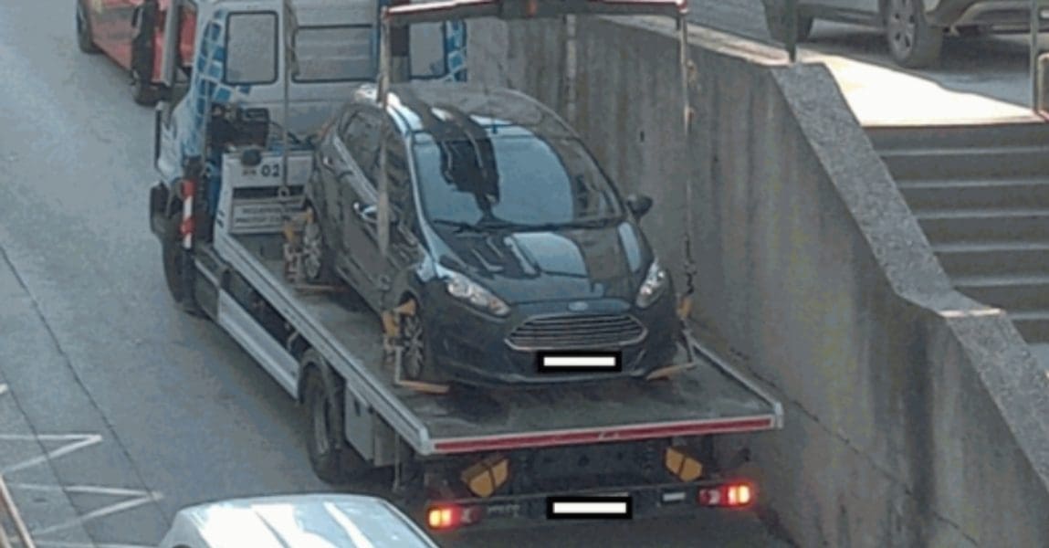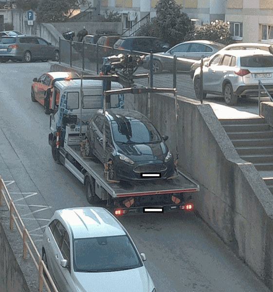 Jutros su na Plokitama gradske službe bile u akciji. Naime, naš čitatelj je snimio 'pauka' kako diže jedno vozilo s ceste.