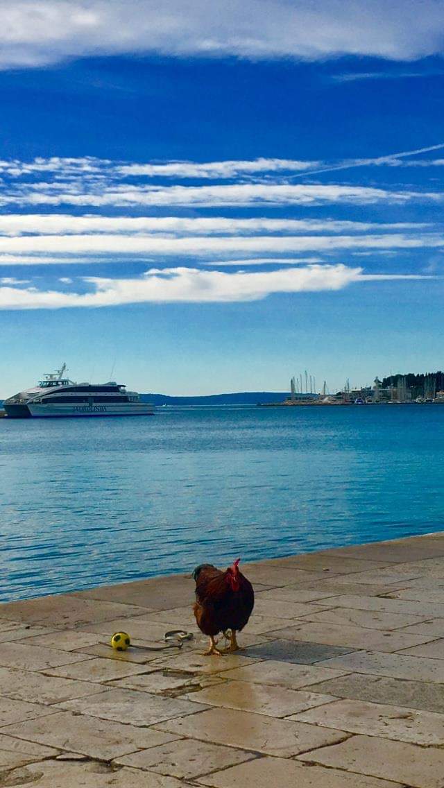 Izbor kućnog ljubimca stvar je odabira svakog vlasnika, no vidjeti kokoš na splitskoj Rivi ne doživljava se svaki dan...