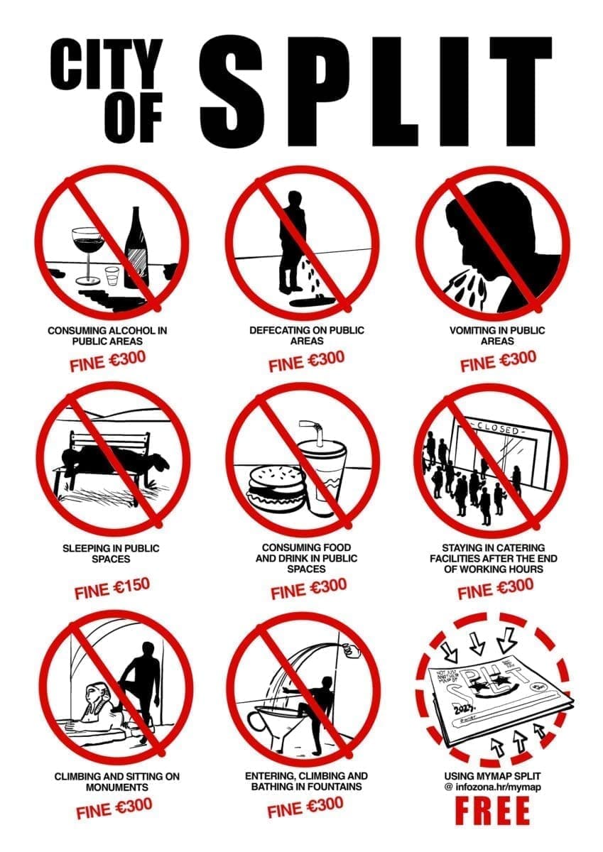 Osim novog izdanja MyMap Split, drugačije mape grada, Info zona je ovog ljeta osmislila i simpatične majice i torbe koje turiste podsjećaju što je normalno ponašanje i koje su sankcije ako to zaborave. Zbog velikog interesa, proizvodi su ponovno dostupni za narudžbu na shop.infozona.hr.