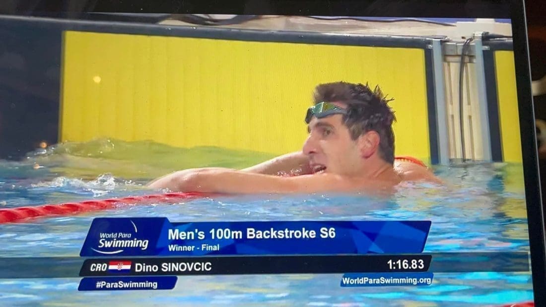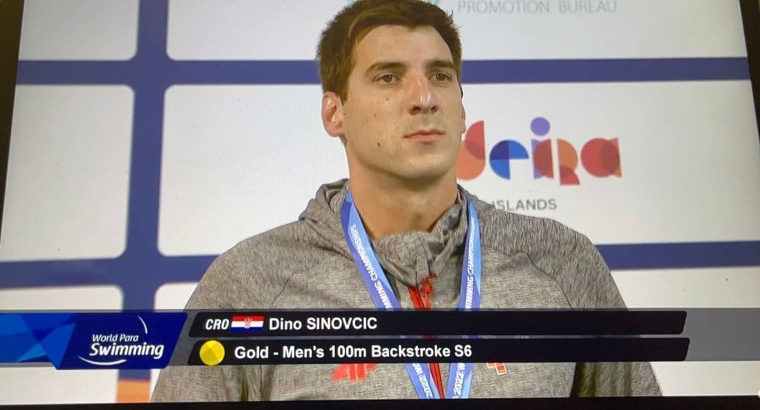 Najbolji hrvatski paraplivač Dino Sinovčić (29) osvojio je zlatnu medalju na 100 metara leđno u disciplini S6 na Svjetskom paraplivačkom prvenstvu u portugalskom Funchalu na Madeiri obranivši tako zlato osvojeno na SP-u 2019. u Londonu.