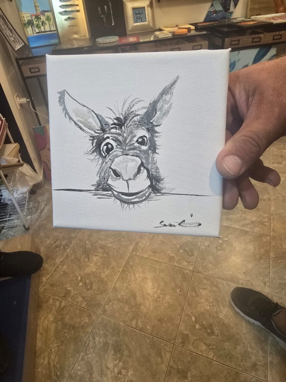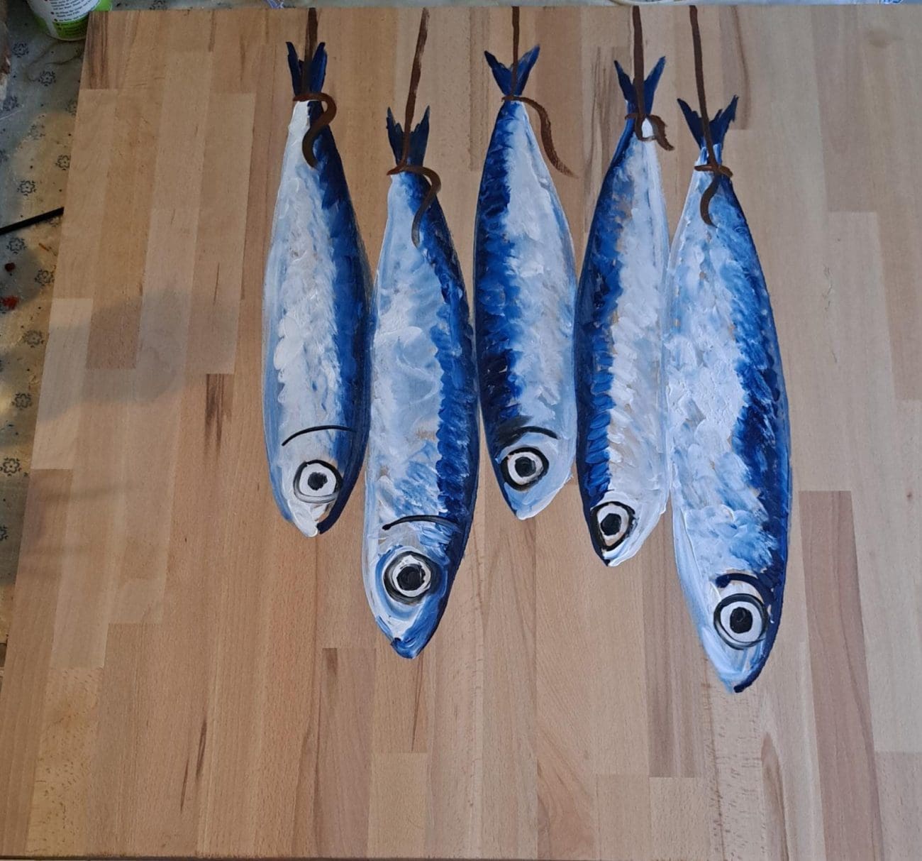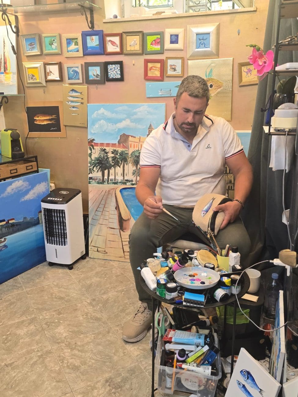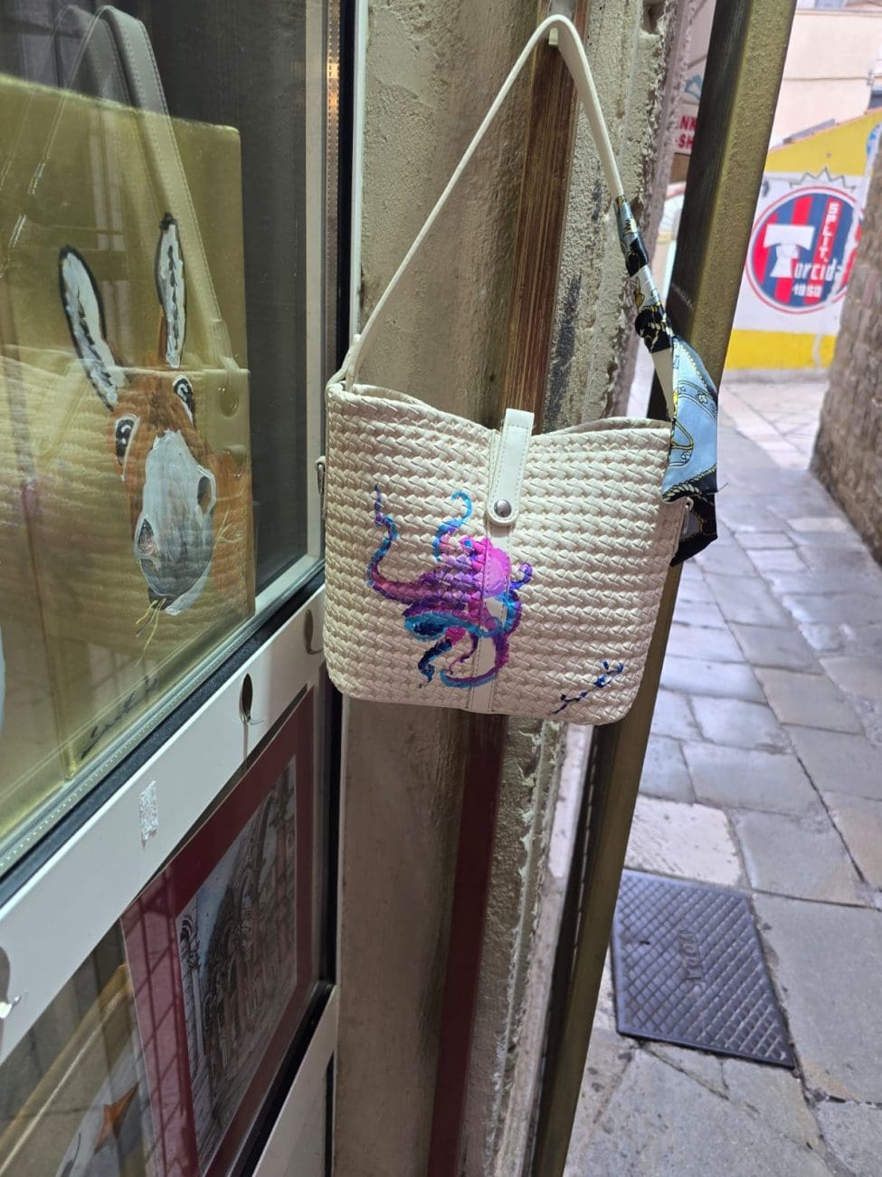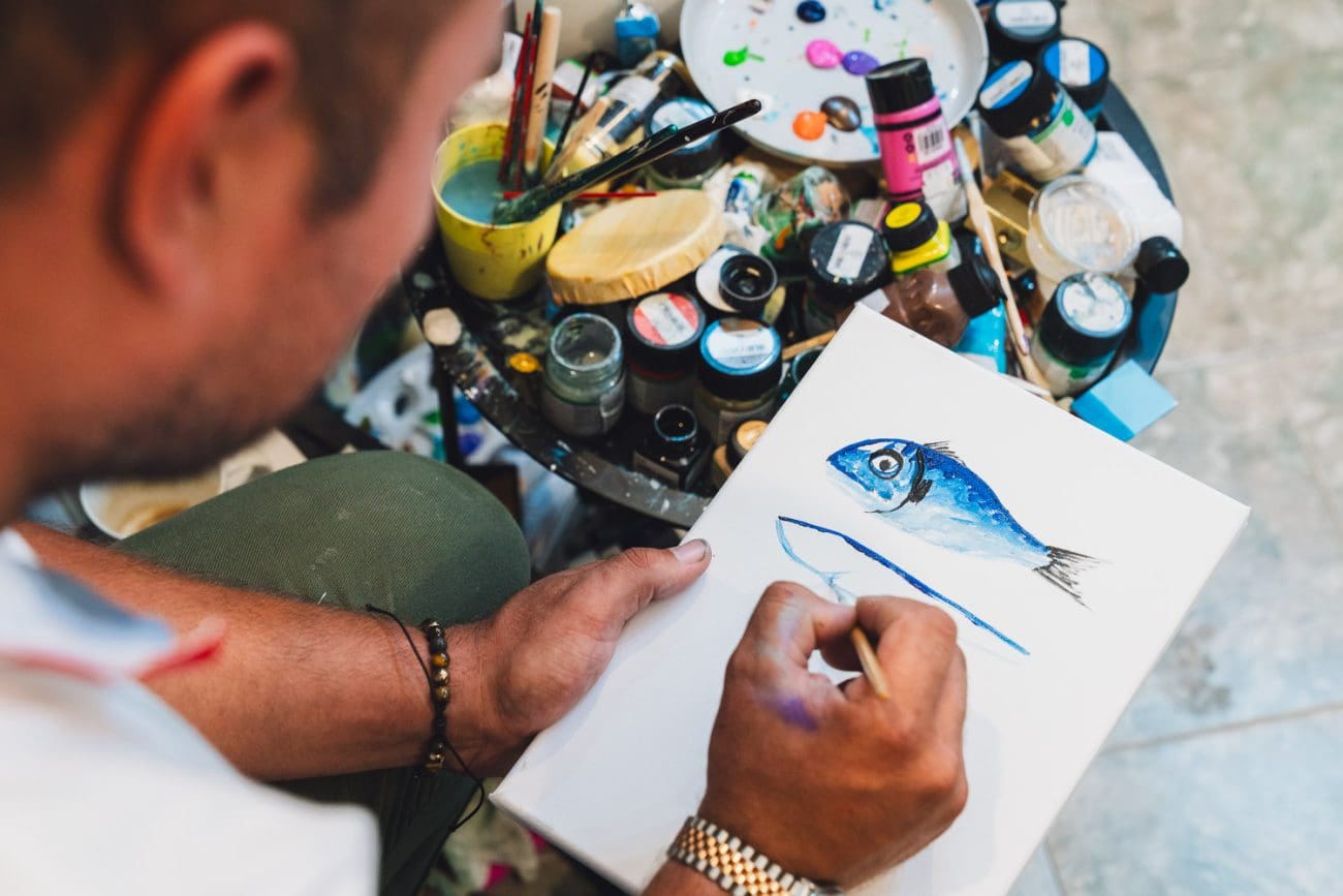 Domagoj nam s osmijehom na licu kazuje da mu je najveća inspiracija upravo Dalmacija – njene ulice, more i ljudi. Često ćete vidjeti kako oslikava magarce, valove, ribe... I to ne samo na papiru, već i na tekstilu po narudžbi.