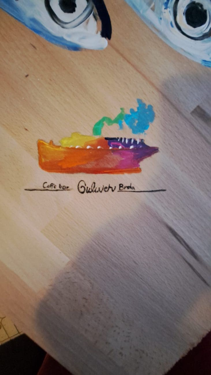 Naš sugovornik je svojim prepoznatljivim stilom oslikao stolove u caffe baru Guliver u Brelima.