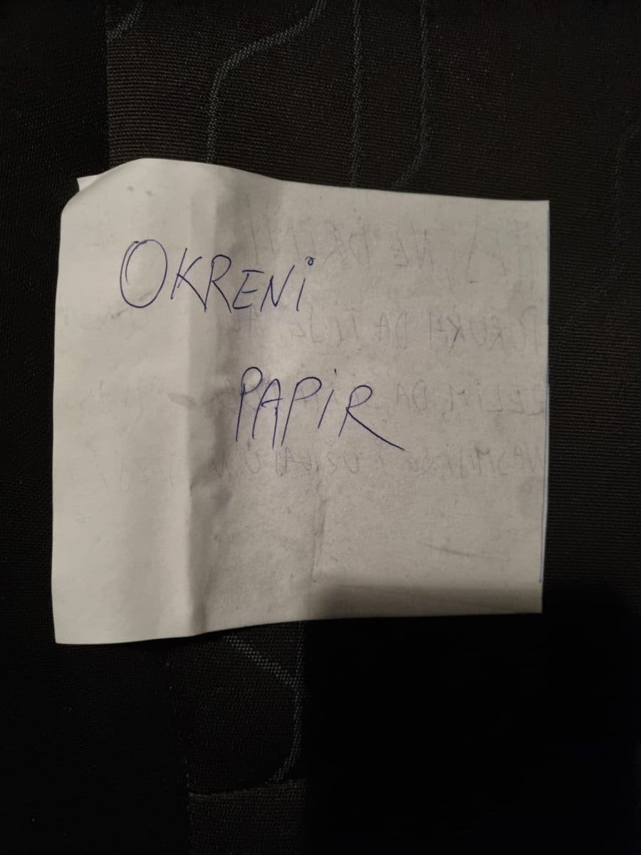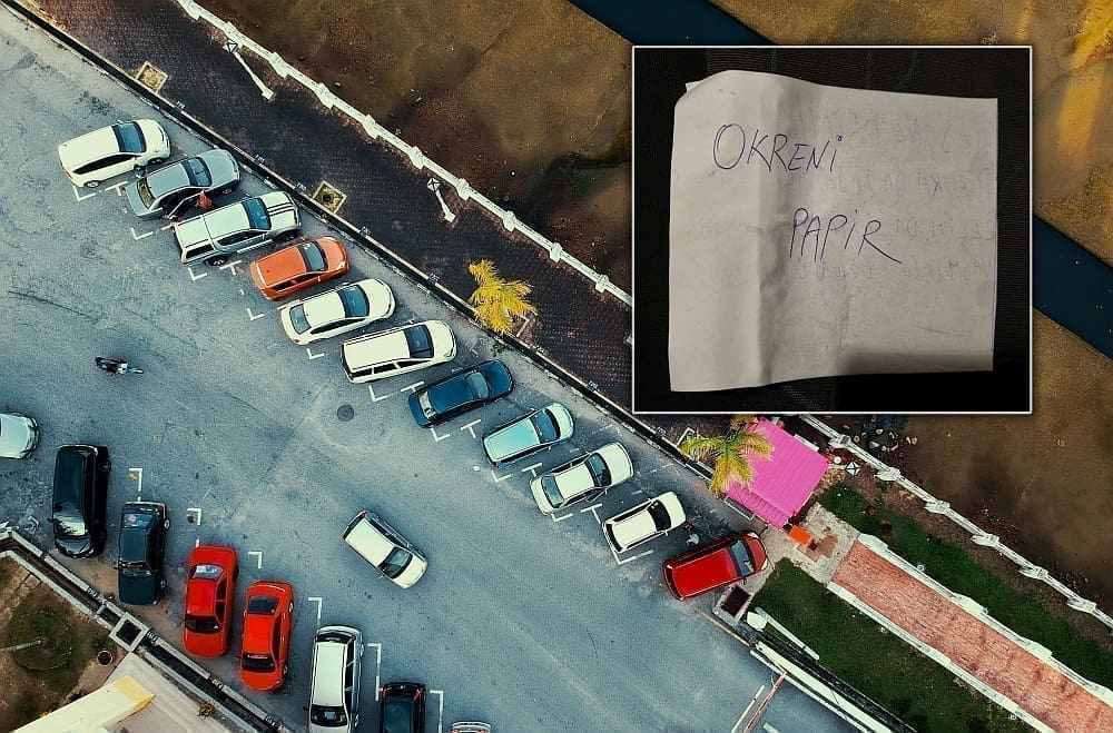 Naime, on je došavši do svog vozila na parkiralištu primijetio poruku na papiru na kojoj je pisalo: "Okreni papir".
