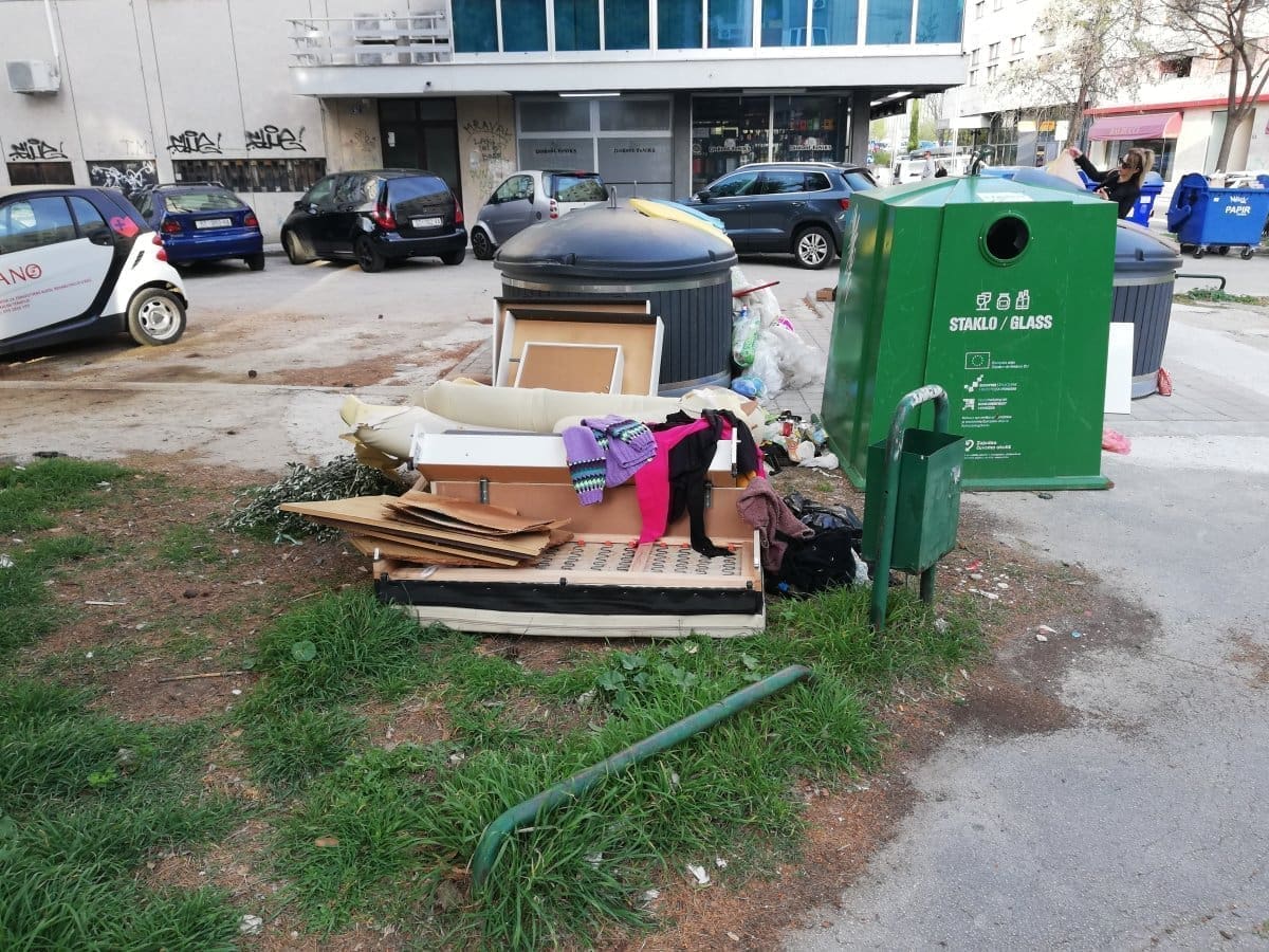 Donosimo fotografiju, netko je očito barem pola spavaće sobe i stare odjeće iz vlastitog ormara izbacio na ulicu...