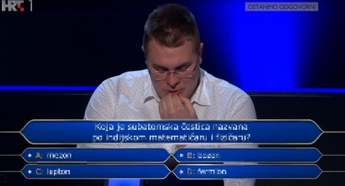"Koji je pojam, prema legendi, nastao na firentinskom mostu Ponte Vecchio", glasilo je pitanje za 32.000 kuna na kojemu je student matematike na zagrebačkom PMF-u zatražio pomoć znalaca. Ivan je rekao da bi točan odgovor trebao biti bankrot (a ne dionica, burza ili devalvacija).