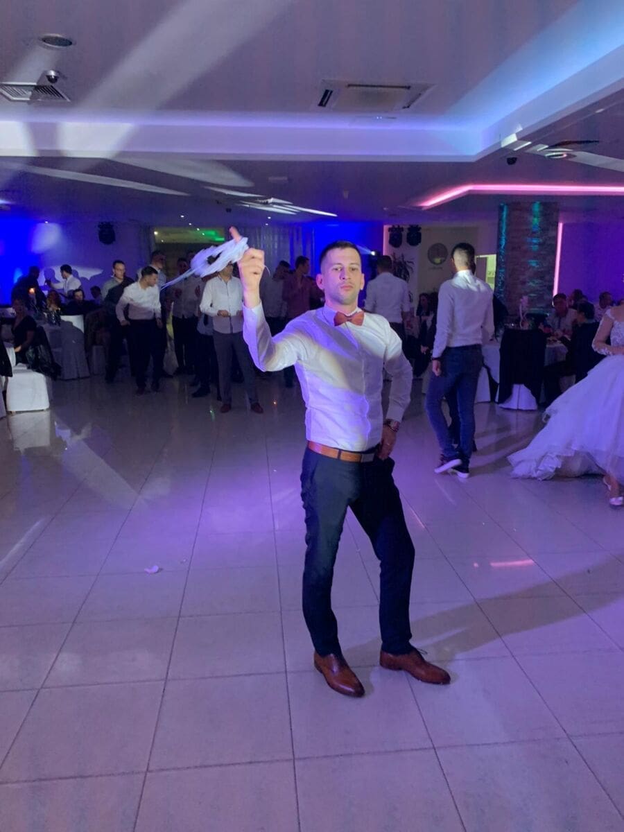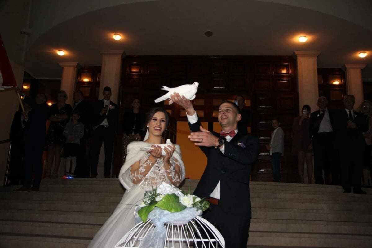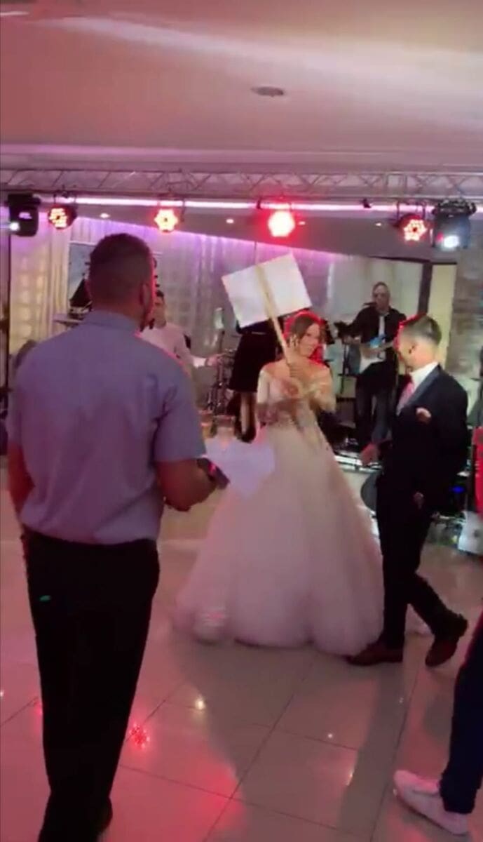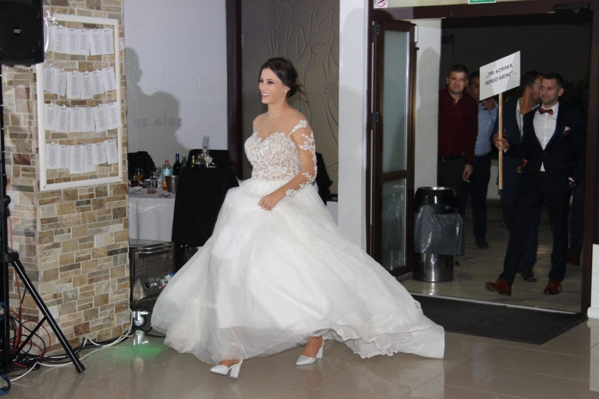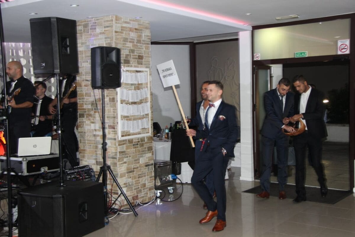 Kada su mladenci ulazili u salu za vjenčanje, Katarina je ušla prva, a iza nje je stajao Hrvoje s natpisom "Tri koraka isprid mene...", aludirajući na poznatu rečenicu Matana iz legendarnih Prosjaka i sinova "Tri koraka isprid mene, silo nečista". Ova je scena nasmijala sudionike vjenčanja.