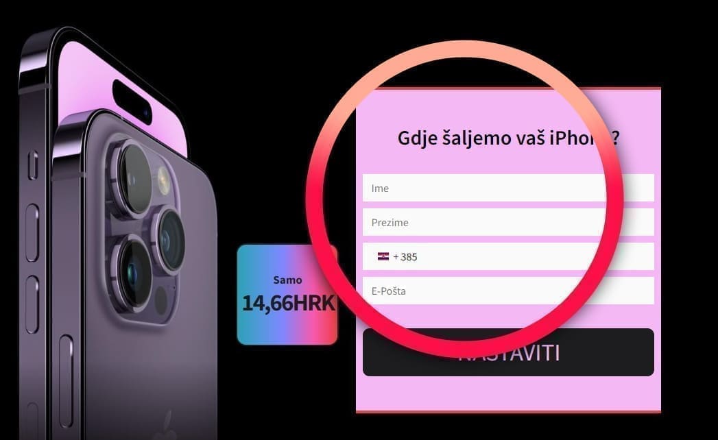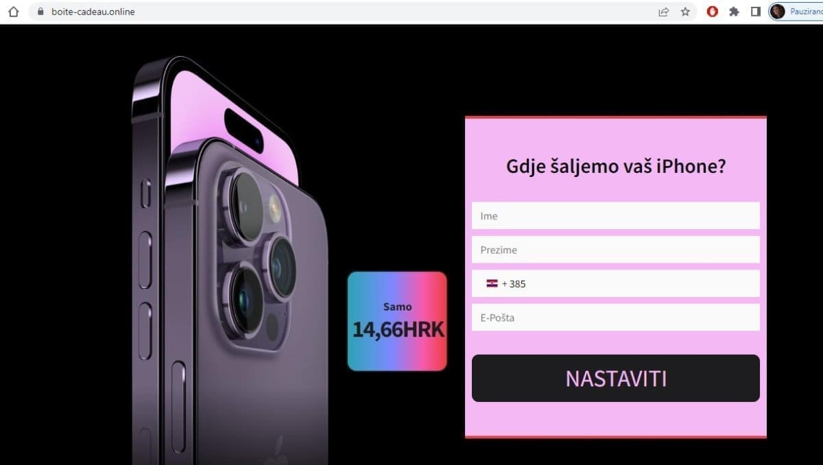 Kako doznajemo od čitatelja, nekolicina njih je upravo danas na svoj mobitel dobila poruku da sudjeluju u kratkoj anketi. Nakon sto bi je ispunili dobili su obavijest kako su osvojili mobitel IPhone 14 te su trebali unijeti svoje podatke i podatke s bankovne kartice.