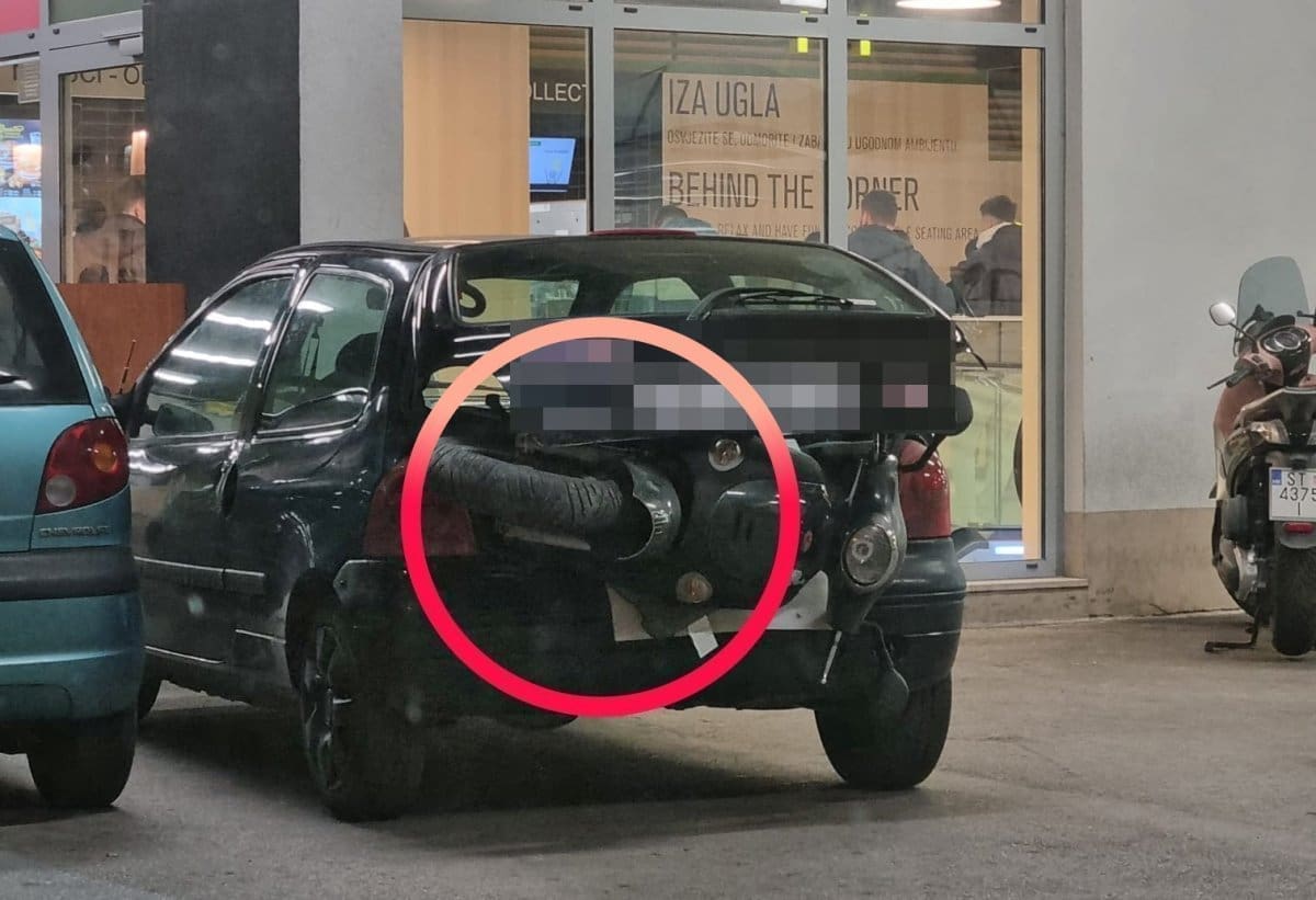 Naime, netko je strpao motocikl u prtljažnik automobila.