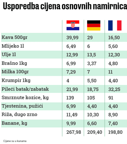 Svakako je zanimljivo primijetiti da je u Njemačkoj cijena osnovnih namirnica čak i jeftinija od cijene u Hrvatskoj!
