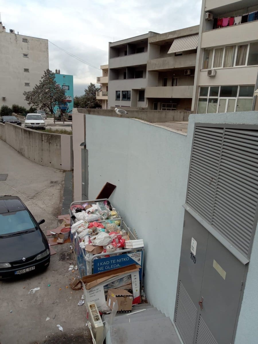 Djelatnici Čistoće će imati pune ruke uklanjanju tog smeća. Žalosti činjenica, što se samo tridesetak metara niže nalazi lokacija polupodzemnih spremnika, koja je naknadno dodana upravo zbog ovih stanara i nije bila među planiranih 10 na Plokitama. Stanari Plave zgrade i vrha Iločke - sramite se", oštro je poručio Denis Pejković, iz Građanske inicijative "Naprid Plokite naprid Siromašna".