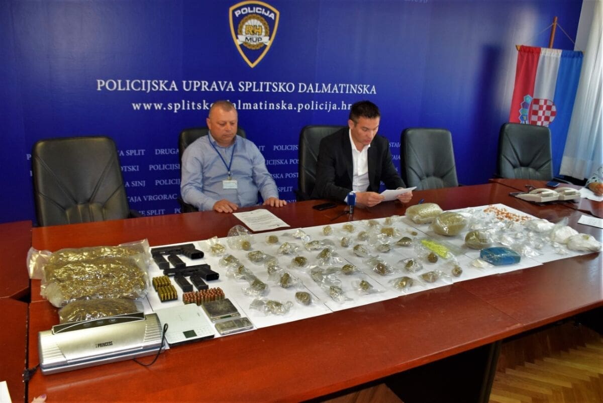 U sklopu kriminalističkog istraživanja jučer je obavljena pretraga stana i drugih prostorija koje koristi osumnjičenik, a kojom prilikom je u iznajmljenom prostoru na području Splita pronađeno 4 kg i 650 grama heroina, 625 grama kokaina, 1 kilogram i 840 grama marihuane, 133 tablete ecstasyja, 54 grama amfetamina, 3 digitalne vage za precizno mjerenje, pribor i oprema za pakiranje droge, 2 pištolja Glock i 135 komada streljiva.