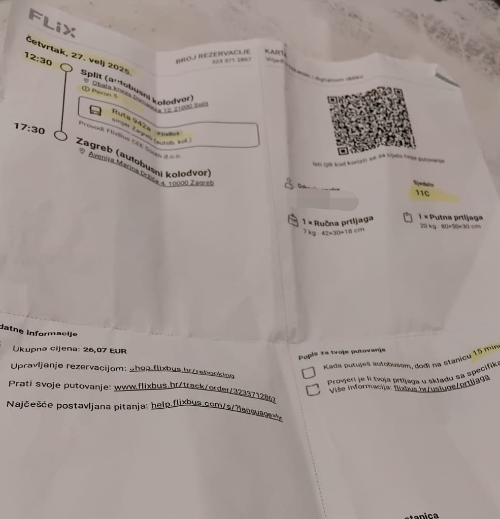 Redakciji Dalmacije Danas javila se uznemirena gospođa koja je putovala na relaciji Split - Zagreb i Zagreb - Split Flixbusom, ali je doživjela jako neugodnu situaciju nakon što je, kako tvrdi, shvatila da je kupila rezervaciju za sjedišta koja uopće ne postoje.