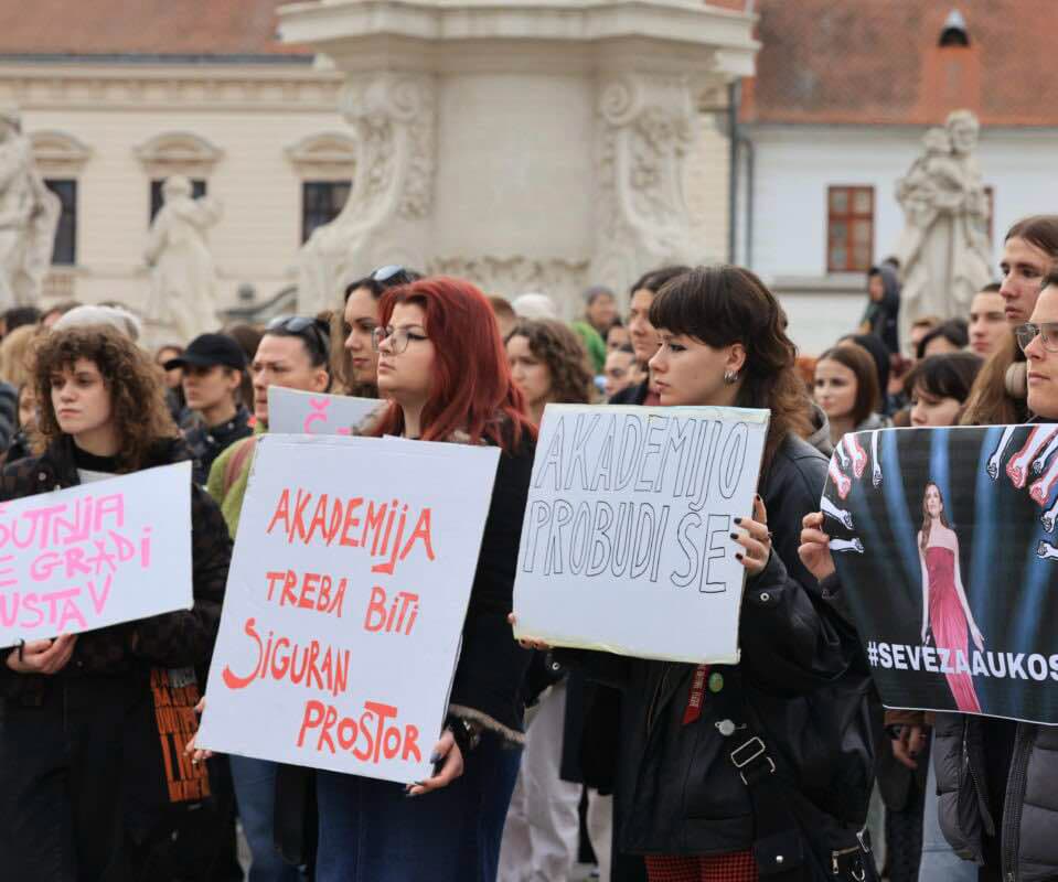 U utorak, 28. siječnja 2025. godine, s početkom u 11 sati na osječkom Trgu Svetog Trojstva, ispred zgrade rektorata Sveučilišta J. J. Strossmayera i Akademije za umjetnost i kulturu, održan je prosvjed pod nazivom “STUDENTI PROGOVARAJU: Dosta je šutnje” u organizaciji studentske inicijative AUKOS Progovara.