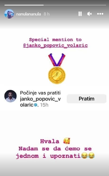 Glumicu Natašu Janjić Medančić na Instagramu je počeo pratiti kolega Janko Popović Volarić.