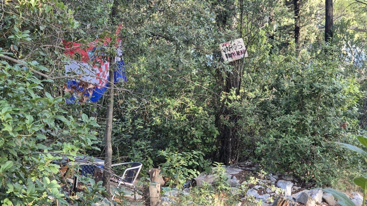 Jedna Splićanka (podaci poznati redakciji) jutros je trčala na splitskom Marjanu. Kada se na trim stazi približila jednom grmu, ugledala je neobičan prizor. Odjednom se ispred nje stvorila hrvatska zastava i natpisi koji su visjeli na stablu.