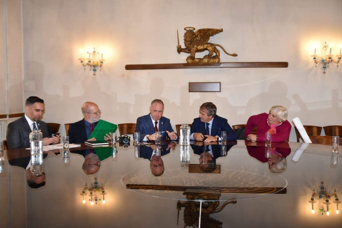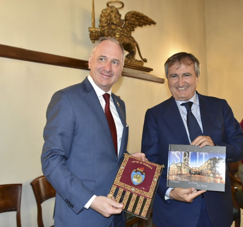 Luigi Brugnaro, gradonačelnik Venecije i splitski gradonačelnik Andro Krstulović Opara sa svojim suradnicima sastali su se danas u sjedištu venecijanske gradske uprave – palači Ca Farsetti uz Gran Canale. U srdačnom i sadržajnom razgovoru otvorili su brojne zajedničke teme i razgovarali o budućoj suradnji dvaju gradova.