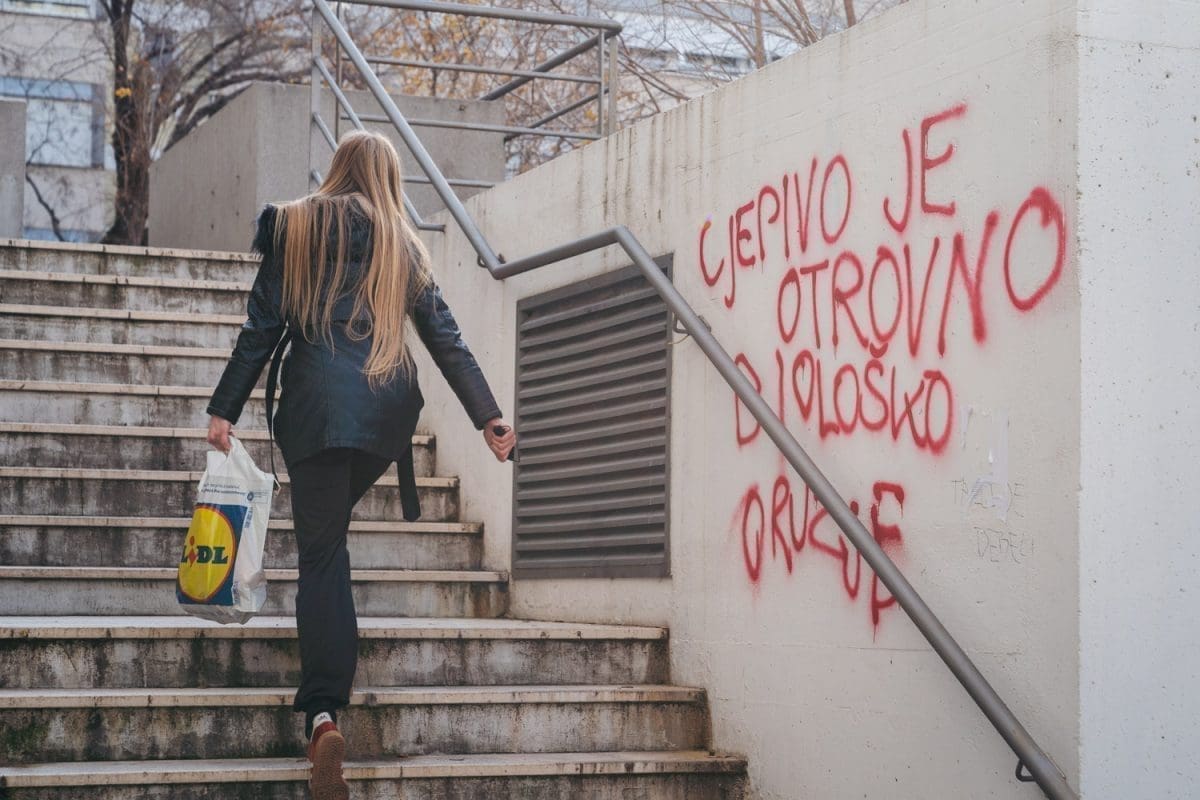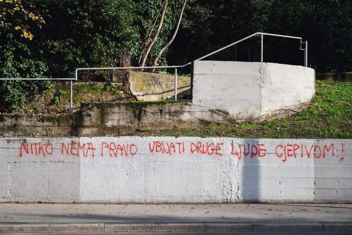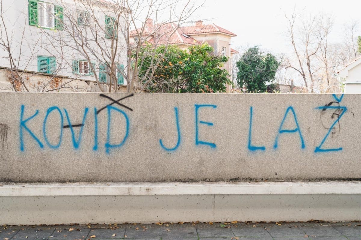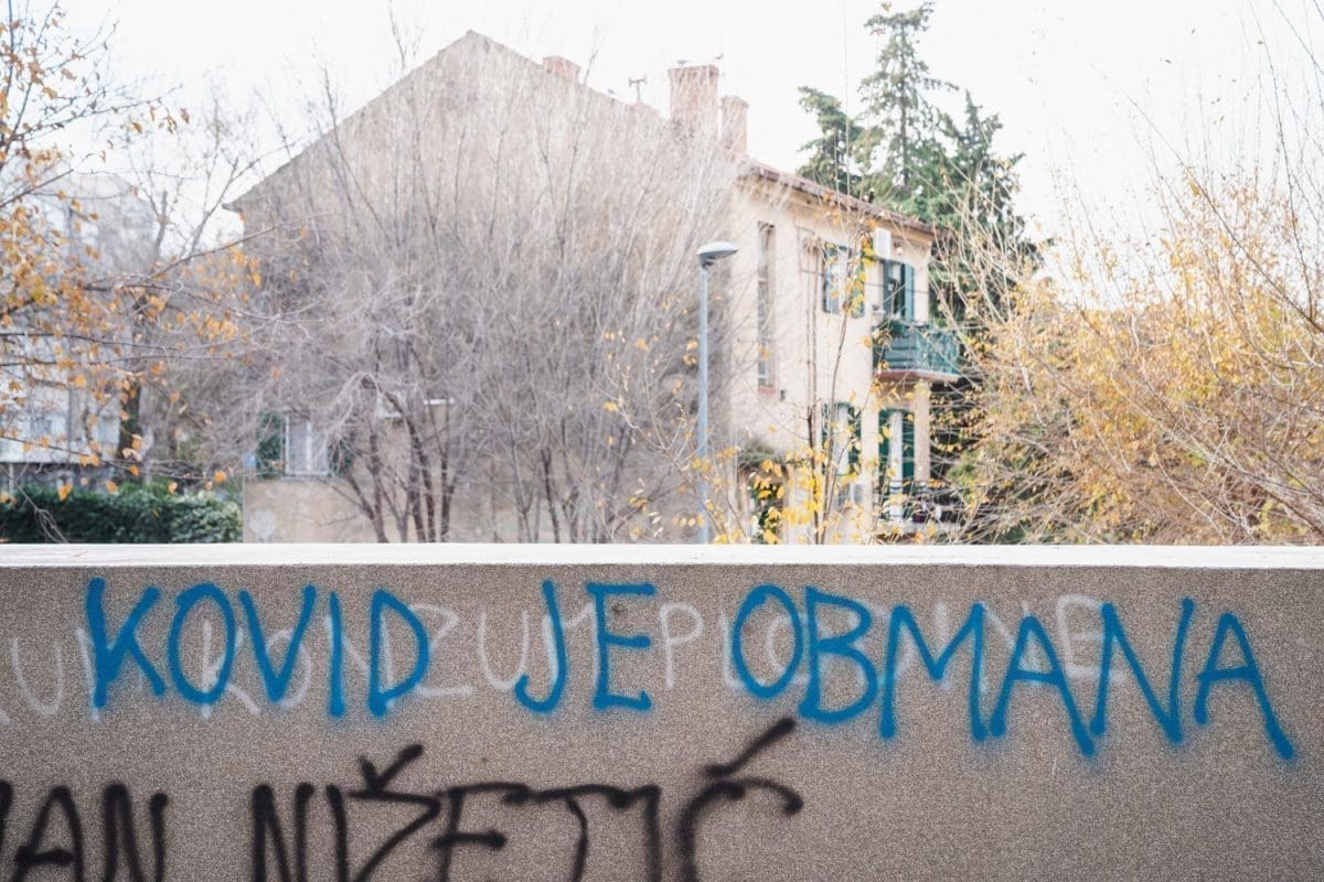 Priča tu ne prestaje. Gotovo nema gradskog kvarta gdje nije osvanuo grafit koji osporiva koronavirus, protivi se cijepljenju ili čak sugerira da je voda zatrovana.