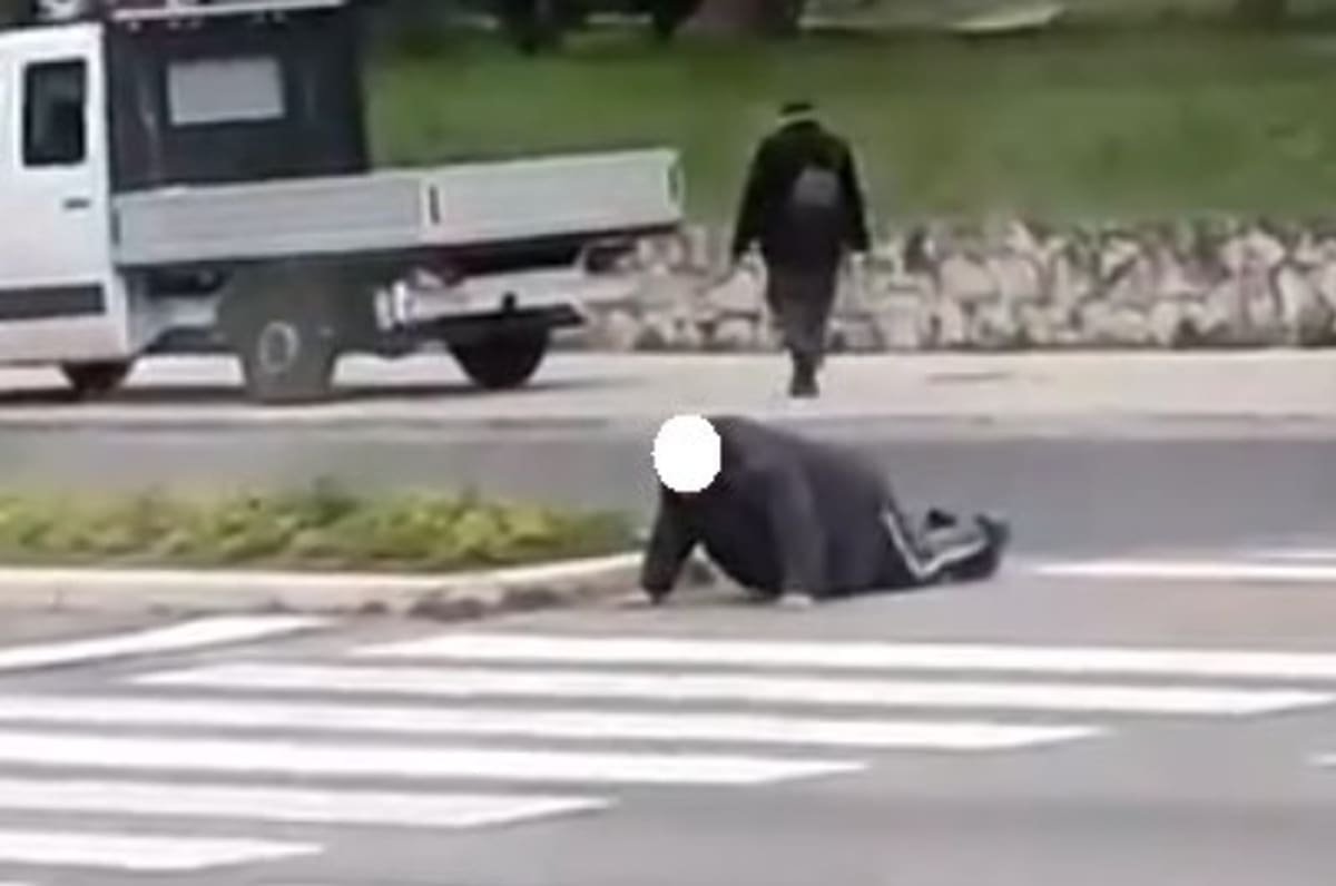 Neobična fotografija osvanula je na društvenim mrežama. Kako objavljuje Facebook stranica Prometne zgode i nezgode, u ulici Domovinskog rata jedan čovjek je iz nepoznatog razloga pao na pješačkom prijelazu.