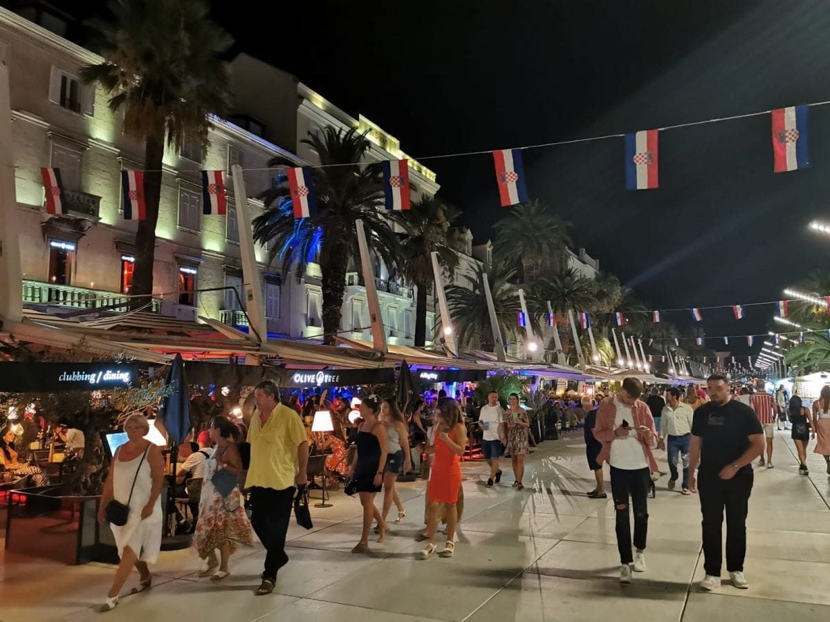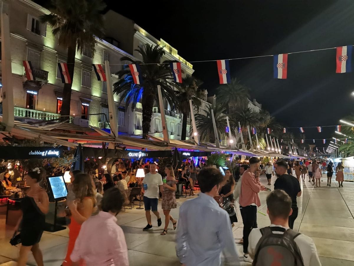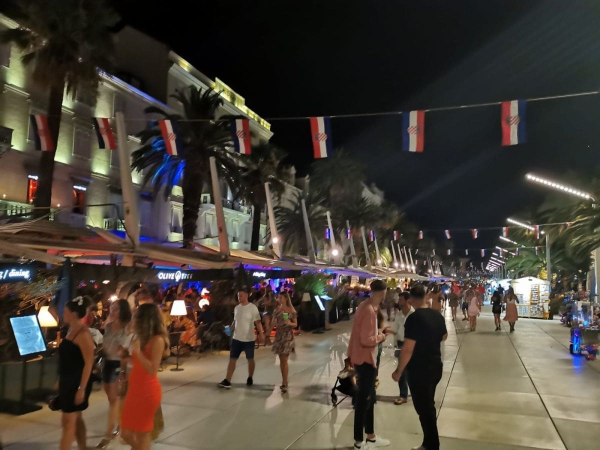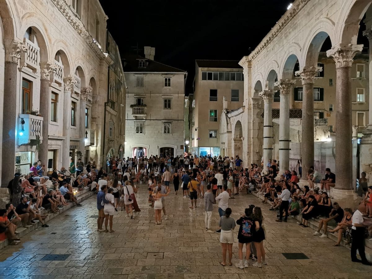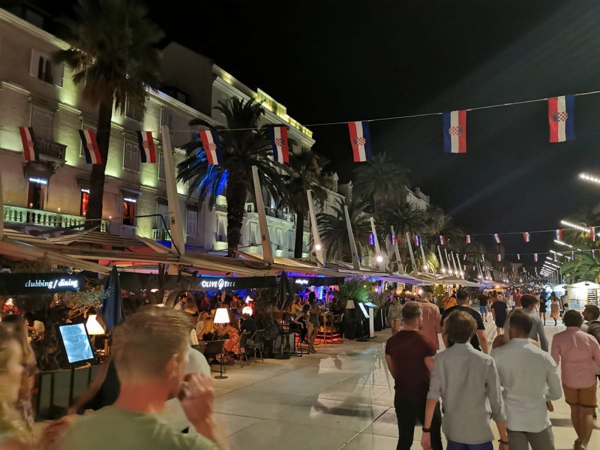 Na Rivi je večeras vladao pravi šušur, ali po uskim gradskim ulicama bilo je mnoštvo ljudi. U kafićima se tražilo mjesto više, a na Peristilu gotovo da nije bilo mjesta za sjesti.
