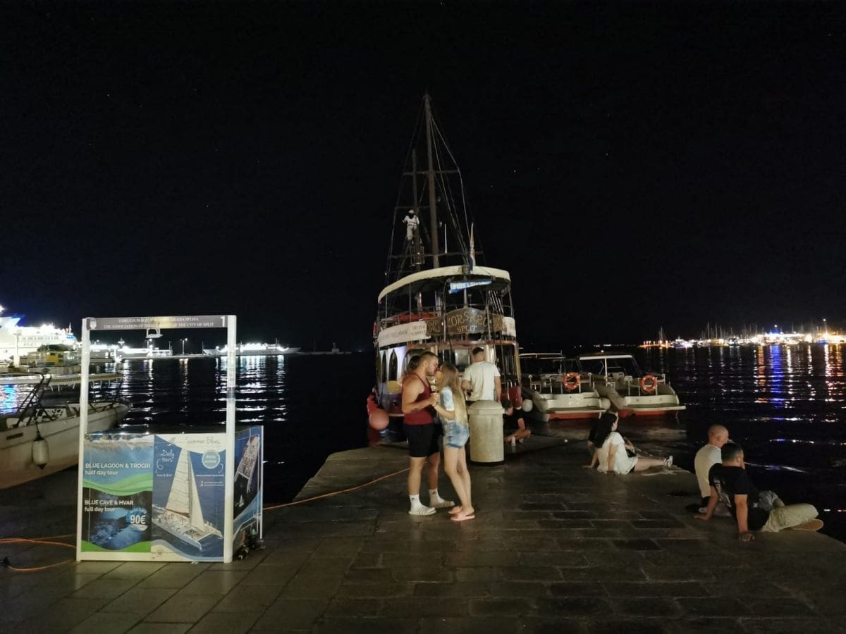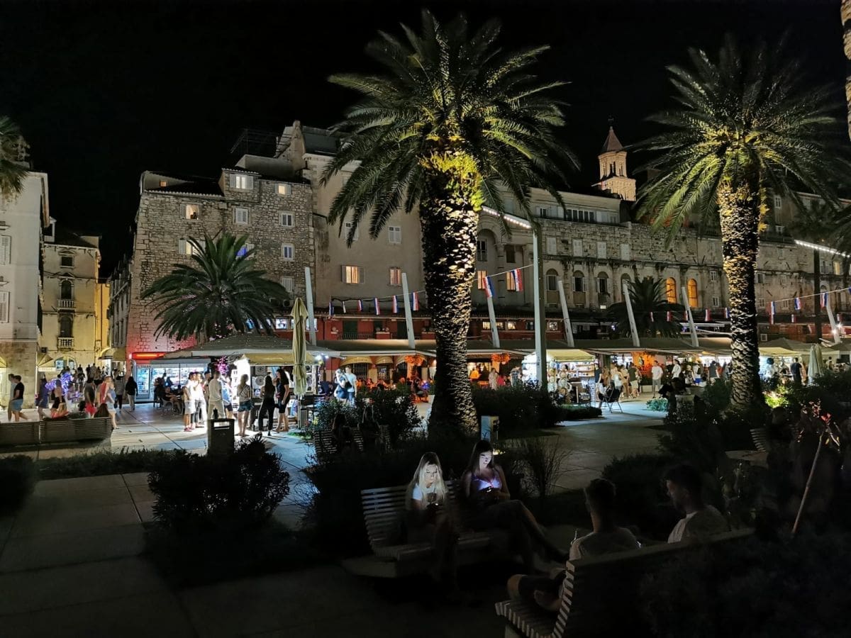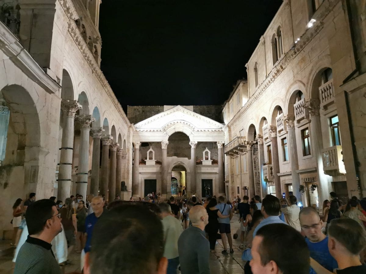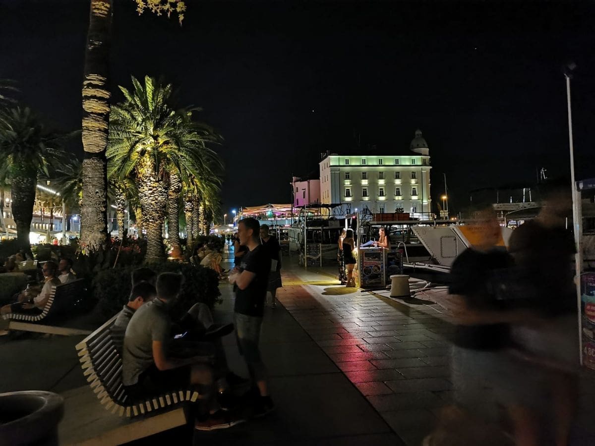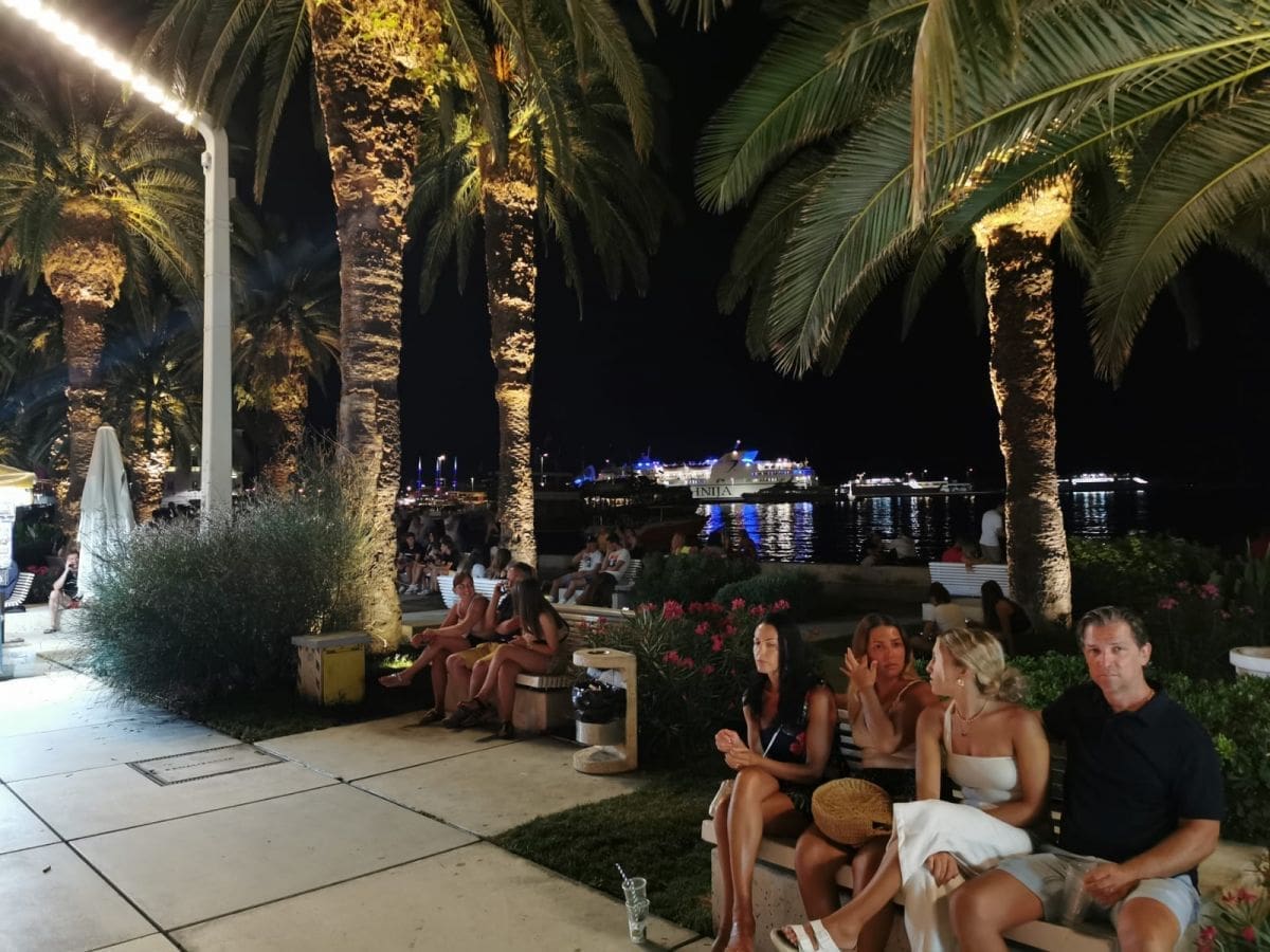 Na Rivi je večeras vladao pravi šušur, ali po uskim gradskim ulicama bilo je mnoštvo ljudi. U kafićima se tražilo mjesto više, a na Peristilu gotovo da nije bilo mjesta za sjesti.