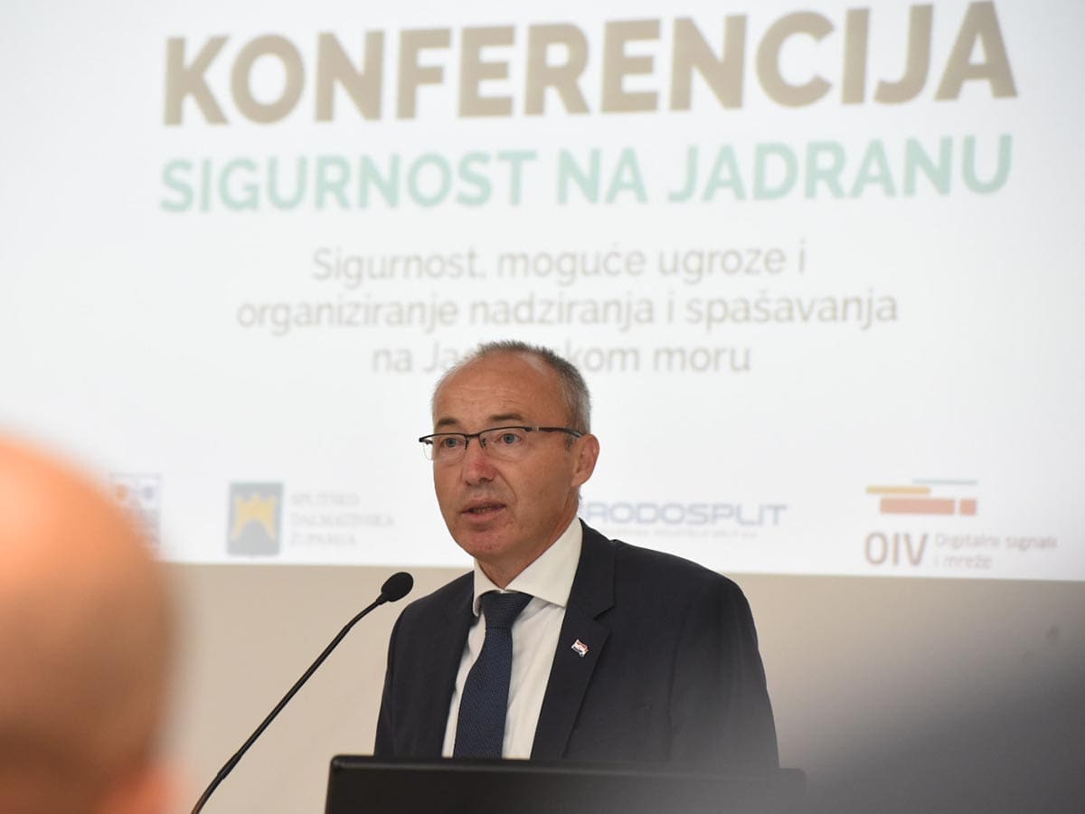 Potpredsjednik Vlade i ministar obrane Damir Krstičević sudjelovao je na konferenciji "Sigurnost, moguće ugroze i organiziranje nadziranja i spašavanja na Jadranskom moru" na Pomorskom Fakultetu u Splitu.