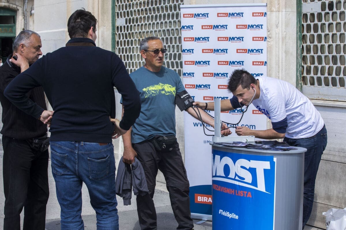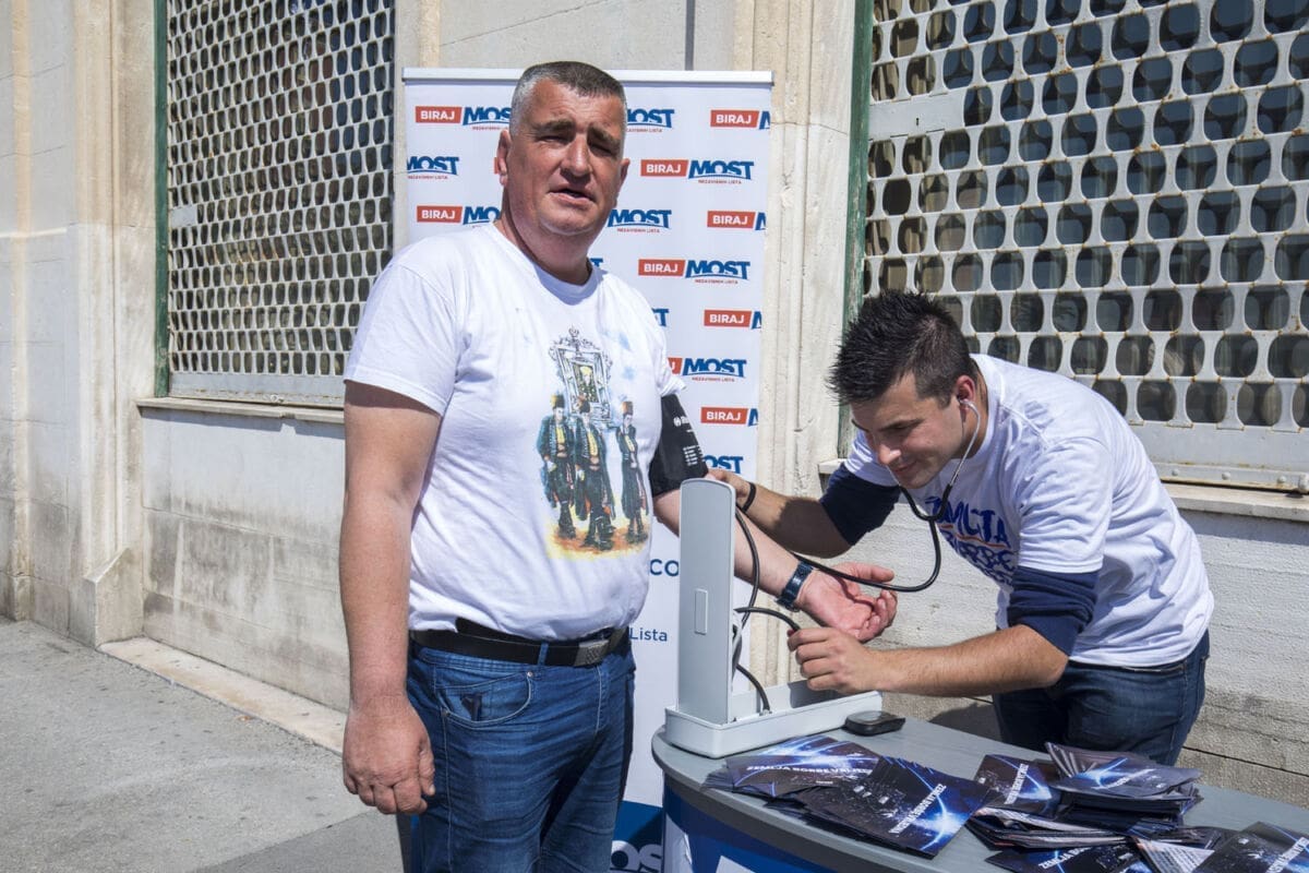Jutros je Most nezavisnih lista, na dnu Marmontove ulice organizirao akciju preventivnog mjerenja šećera, krvnog tlaka i savjetovanja građana o zdravim navikama.