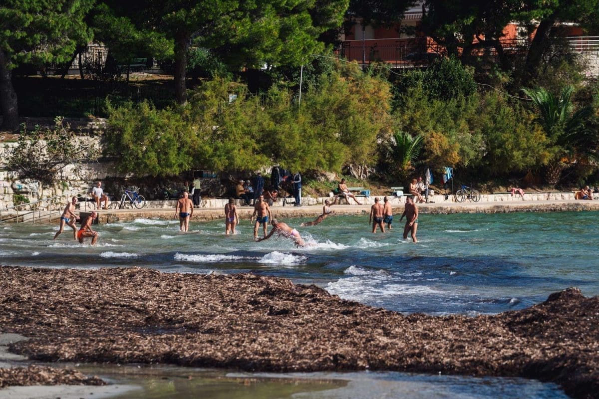 Jedna od najpopularnijih plaža u Splitu, brzo se napunila posjetiteljima koji su tražili mjesto na pijesku kako bi se opustili i upijali sunčeve zrake. Neki su se hrabro upustili u osvježavajuće kupanje u moru i tradicionalno zaigrali picigin, dok su drugi radije šetali obalom.