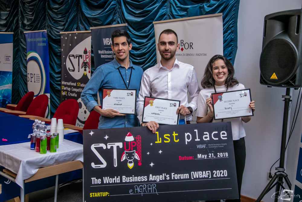Prije proglašenja pobjednika, generalni direktor tvrtke Uber za područje jugoistočne Europe i član upravnog odbora Hrvatske udruge poslovnih anđela (CRANE), Davor Tremec održao je predavanje "Startup financing" o načinima financiranja novih projekata. Žiri je jasno naglasio kvalitetu svih prijavljenih projekata, ali i same organizacije ovog natjecanja. Prema glasovima članova žirija za pobjednika prvog STup! natjecanja proglašeni su studenti Splitskog Sveučilišta, članovi tima eAgrar čiji se projekt bazira na sustavu praćenja utjecaja vremenskih prilika na tlo, praćenja temperature, vlažnosti i tlaka zraka. Namijenjen je poljoprivrednicima kako bi uspješno mogli predvidjeti neprilike. Članovi pobjedničkog tima su Slaven Damjanović, Martin Pervan, Marko Čalić. Drugo i treće mjesto zauzeli su timovi iz Malage: Biofy i Nicehop.
