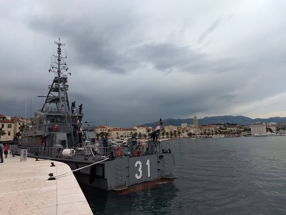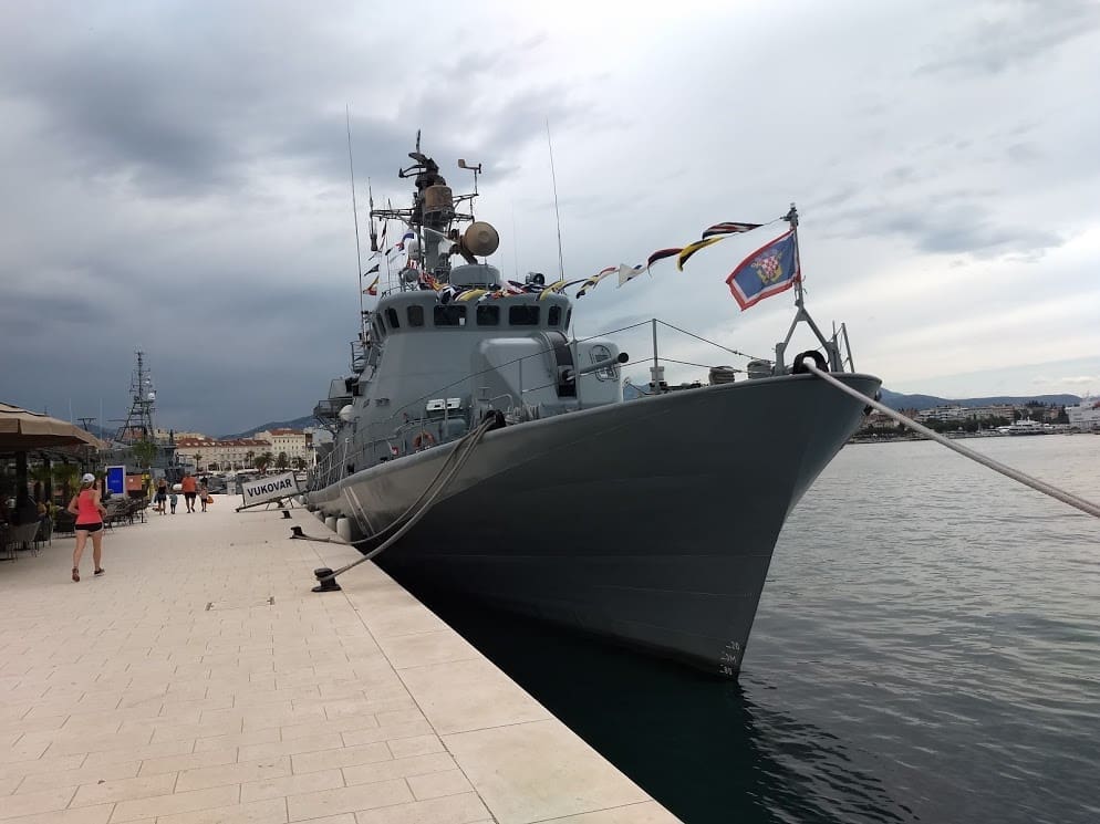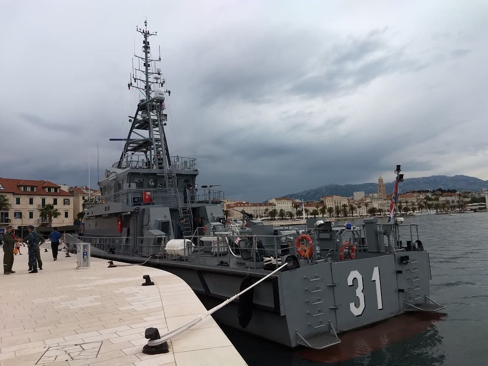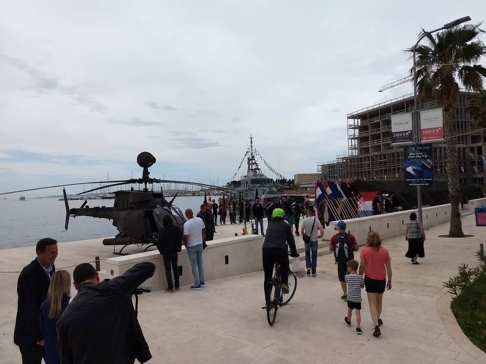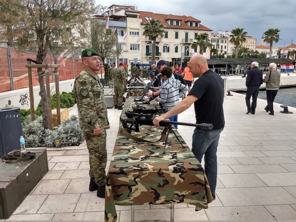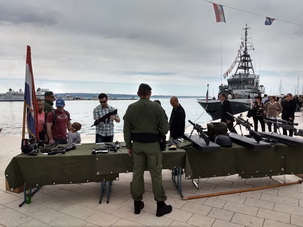 Građani razugledavaju brodove Hrvatske ratne mornarice te borbena sredstva Hrvatske kopnene vojske i Hrvatskog ratnog zrakoplovstva.