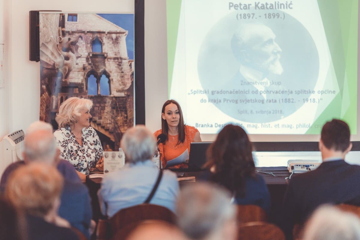 Jučer je u Gotičkoj dvorani Muzeja grada Splita održan je znanstveni skup “Splitski gradonačelnici od pohrvaćenja splitske Općine do kraja Prvog svjetskog rata (1882.-1918.)” u organizaciji Muzeja grada Splita i Društva prijatelja kulturne baštine Split. Nakon pozdravnih govora v. d. ravnateljice Muzeja grada Splita mr. sc. Tee Blagaić Januška, predsjednika Društva prijatelja kulturne baštine Split Ede Šegvića i zamjenika gradonačelnika grada Splita Nina Vele, započela je prva sesija znanstvenih izlaganja.