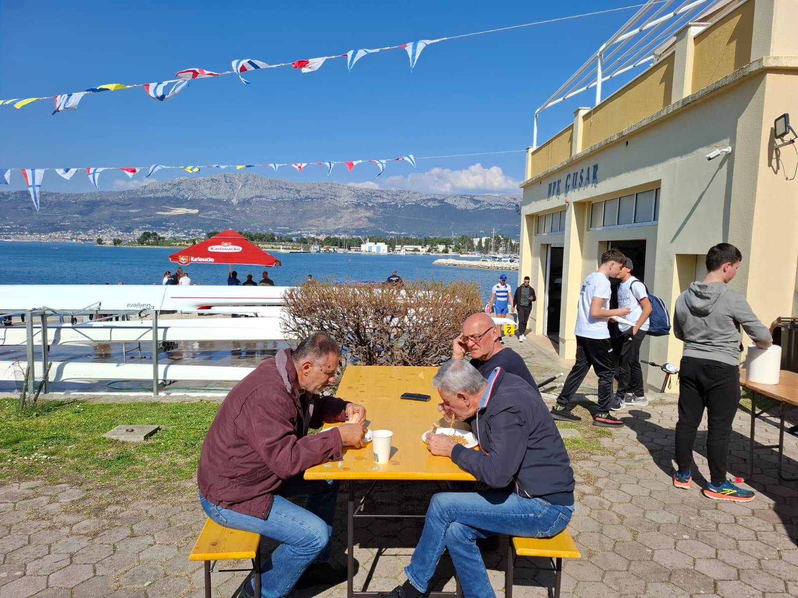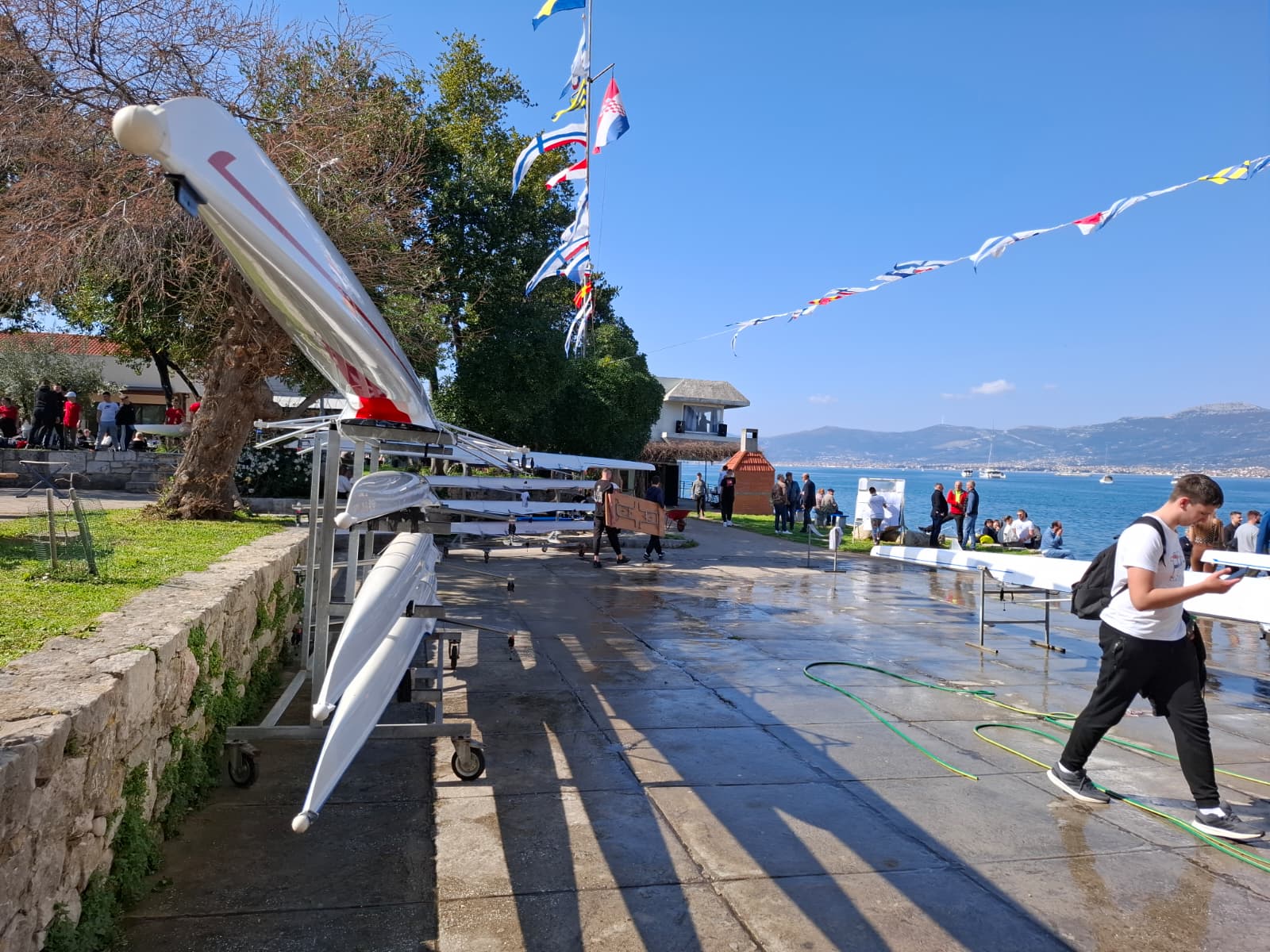 Dok su posade prolazile regatnom stazom, na moru je bio i trener Boban koji svakodnevno radi s mladim veslačima. Bez obzira na vremenske uvjete, treninzi se održavaju gotovo svaki dan.