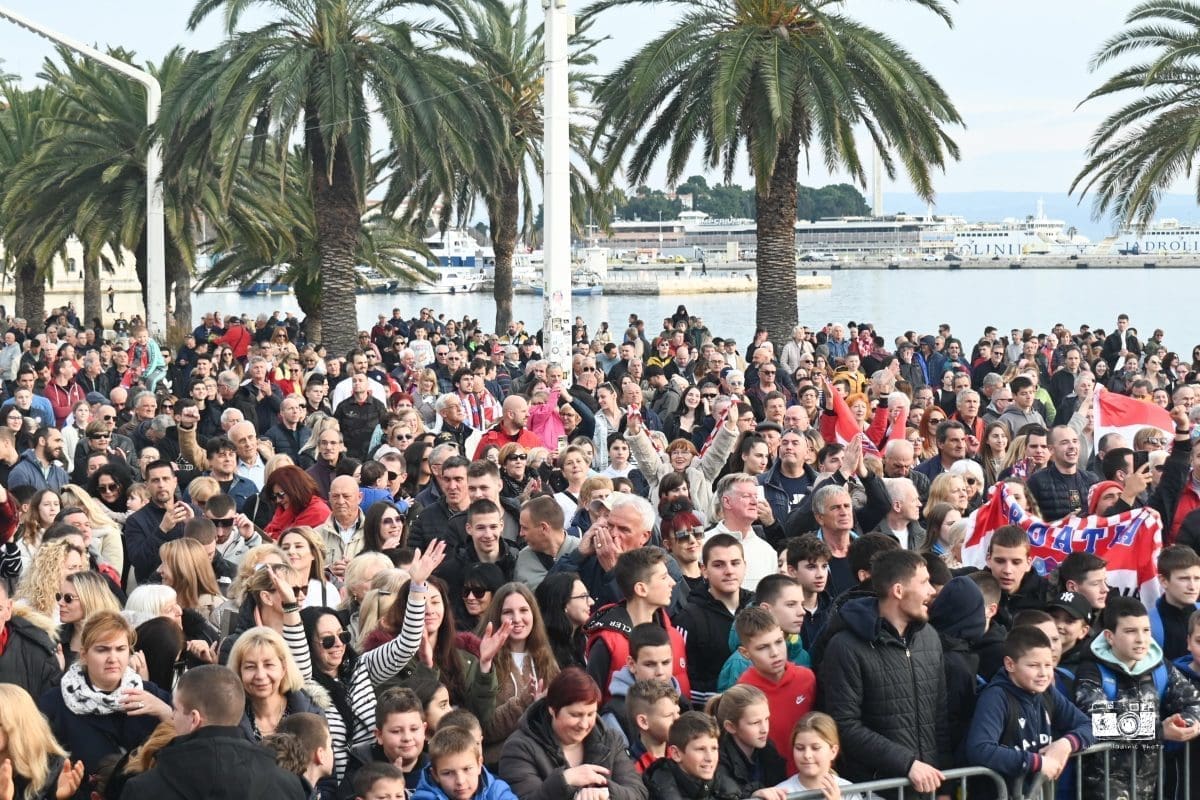 “Srce nam je puno što je ovoliko ljudi došlo pozdraviti i podržati naše zlatne dečke. Split je još jednom pokazao kako zajedno dišemo, kako zajedno možemo biti ‘isto tijelo, ista duša’ i u pobjedi i u porazu. Ovoga puta u slavlju i onome što nas oduvijek povezuje. Velika je organizacija u jako kratkom vremenu, ali kada imate tu emociju koju nam ovi dečki donose, sve je moguće”, istaknula je voditeljica manifestacija Grada Splita, Lorena Šipić.