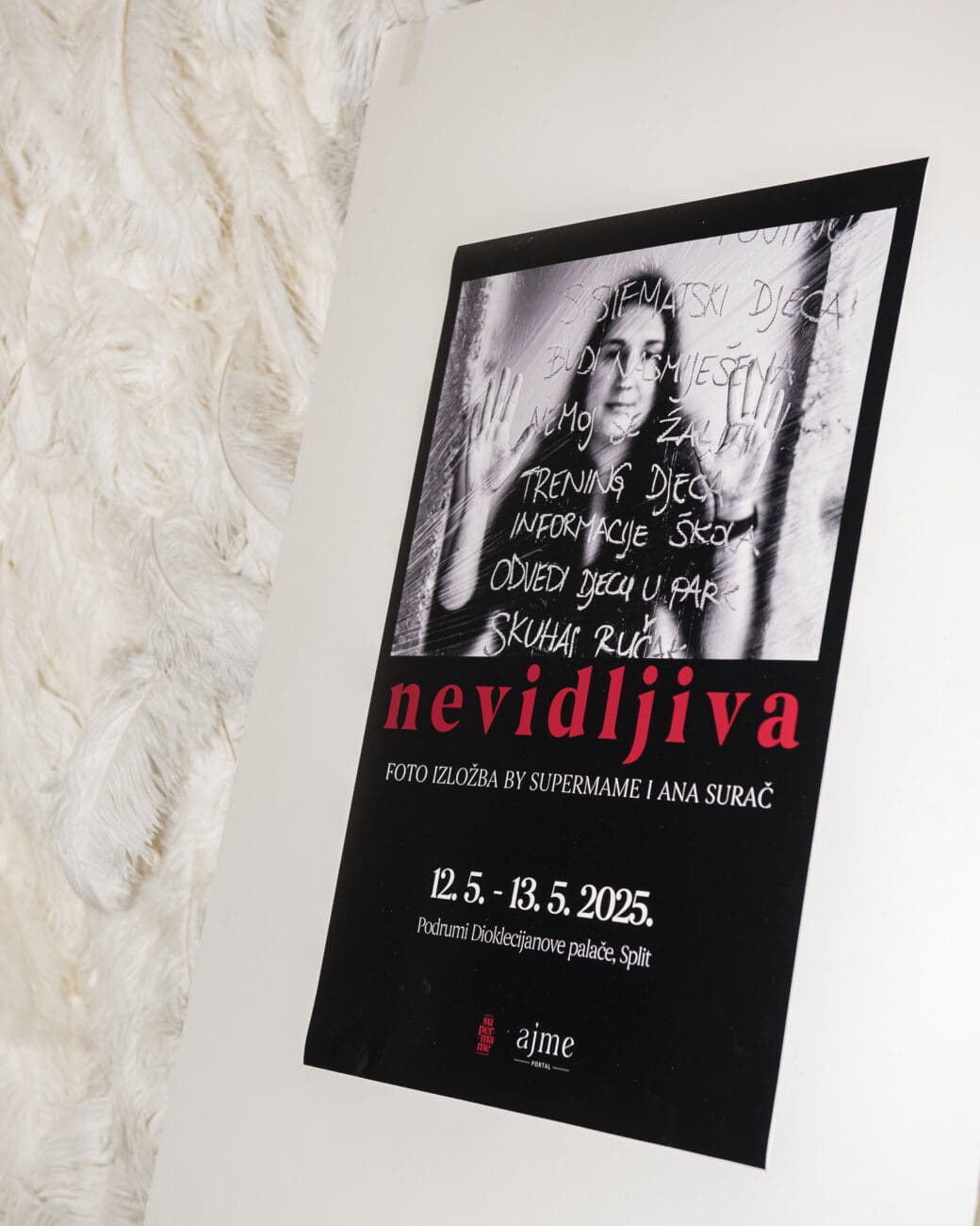 „Nevidljiva“ je projekt koji kroz fotografije Ane Surač donosi iskrene ispovijesti i autentične priče žena i majki. Izložba u Dioklecijanovim podrumima rezultat je suradnje portala ajme.hr i supermame.hr. Zahvaljujući njihovom trudu, Split će još danas, 13. svibnja, biti domaćin izložbe koja nosi duboke poruke o majčinstvu.