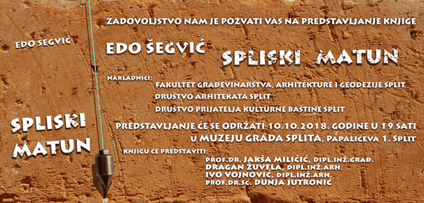 U srijedu 10. listopada s početkom u 19 sati u Gotičkoj dvorani Muzeja grada Splita biti će upriličena promocija knjige Ede Šegvića SPLISKI MATUN.