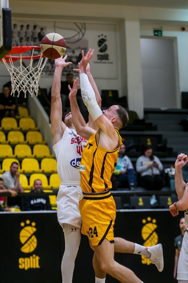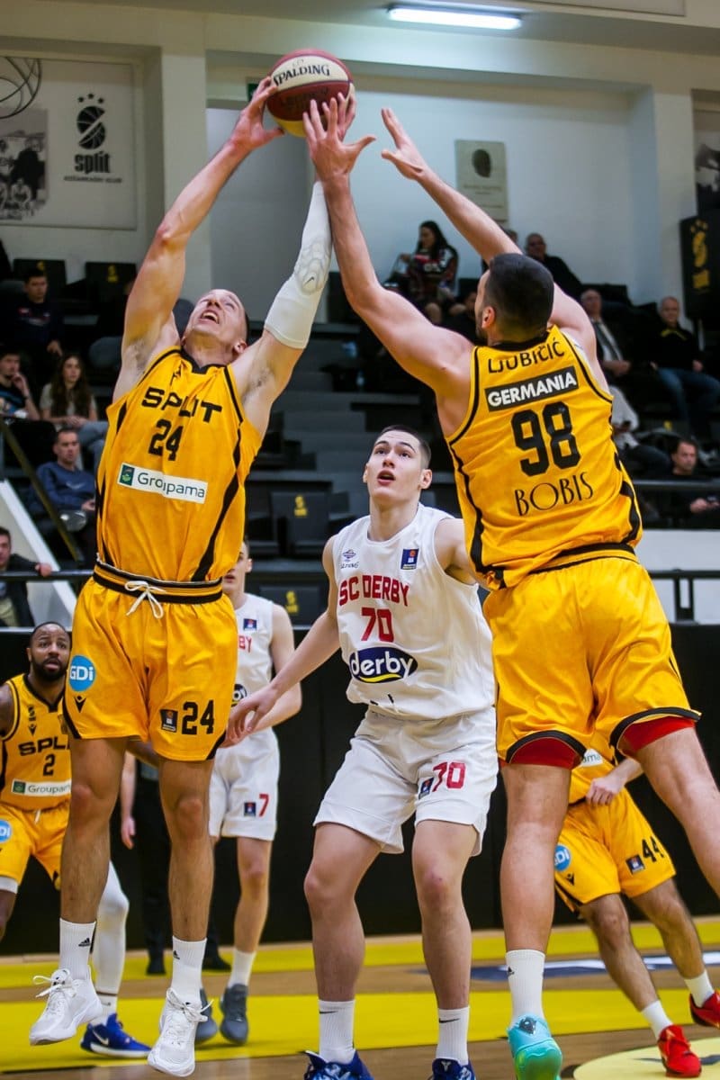 Košarkaši Splita danas su od 20:00 sati igrali protiv SC Derbyja na Gripama u sklopu 9. kola AdmiralBet ABA lige. Slavili su Splićani rezultatom 88:85 nakon produžetka i tako „skinuli“ prokletstvo u kojem je Derby uvijek slavio na splitskom parketu. Prva i treća četvrtina pripale su gostima (16:19, 25:29), a druga i četvrta (17:15, 19:14), kao i produžeci (11:8) pripali su domaćinima.