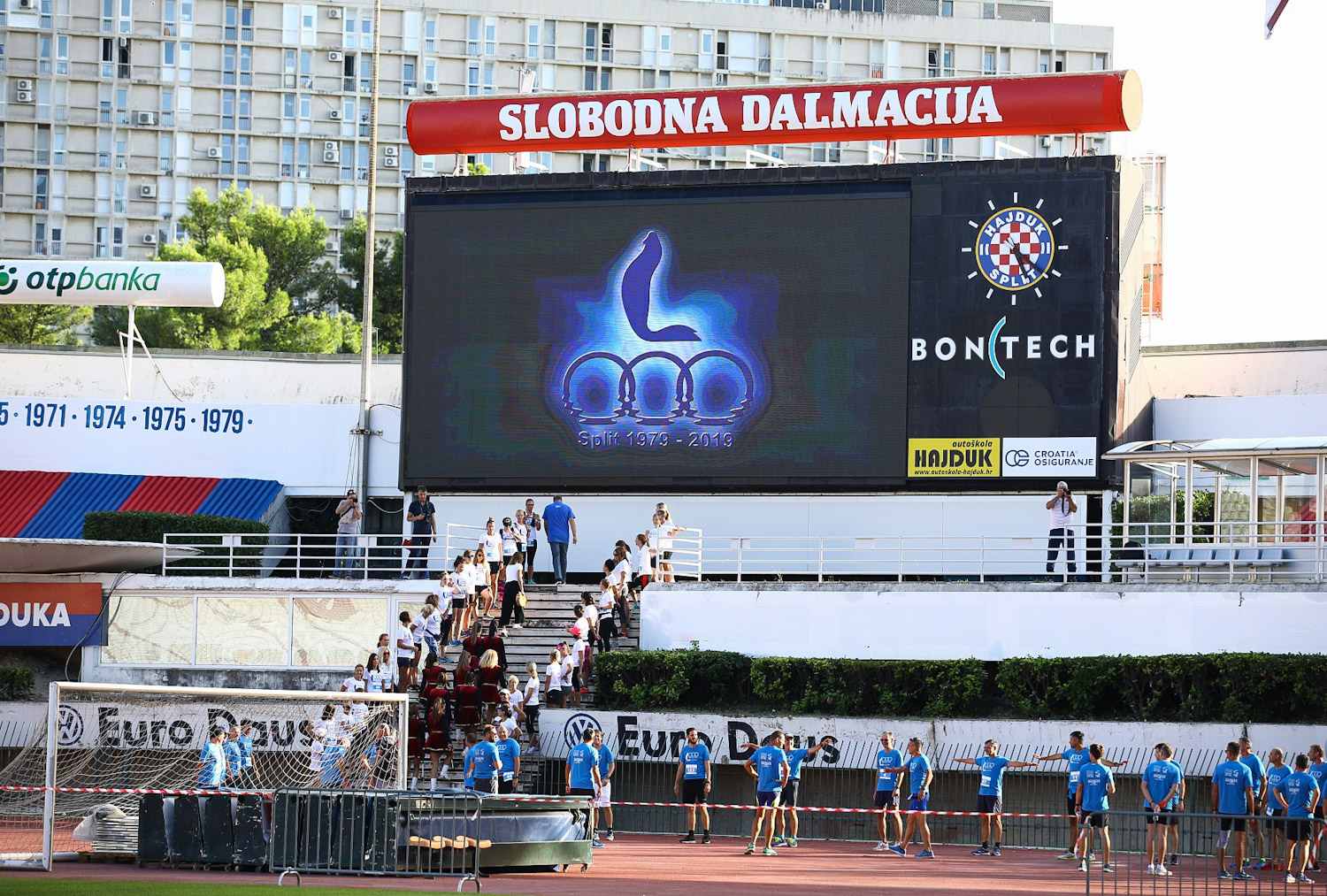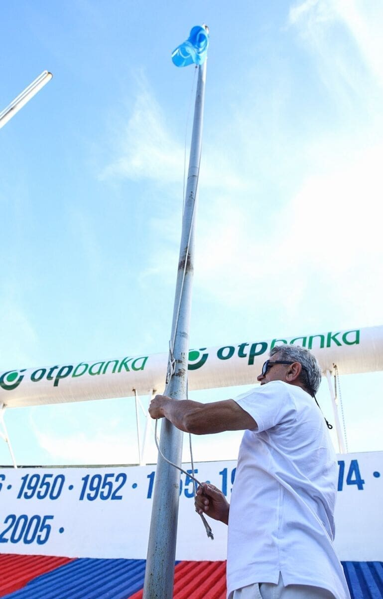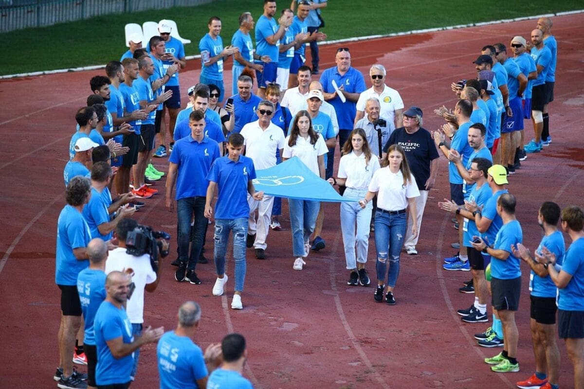 Zastavu Mediteranskih igara na Hajdukov su stadion donijeli juniori Gusara, Labuda, Hajduka i KK Split, predavši je u ruke našem proslavljenom alpinisti Stipi Božiću koji ju je, baš kao i prije četiri desetljeća, podigao na jarbol i time označio splitske dane posvećene MIS-u.