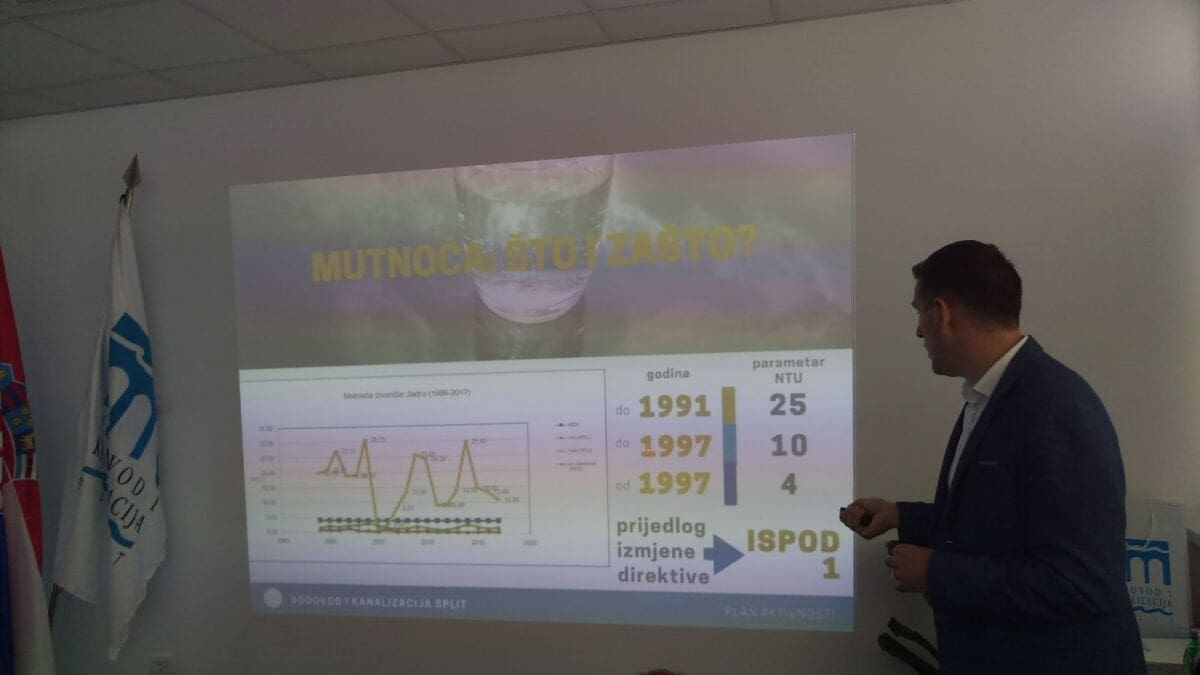 - Tražimo od svih ljudi koji rade u sustavu vodoopskrbe i kanalizacije da se maksimalno angažiraju kako bi Split i splitska aglomeracija imali sustav koji bi bio na razini vremena u kojem živimo. Ne možemo biti zadovoljni sadašnjim stanjem. Izvor vode u blizini samog grada opskrbljuje nas vodom koja je po svim analizama jedna od najkvalitetnijih u zemlji i šire, a s tim možemo biti sretni. Po najnovijim parametrima koje smo usvojili ulaskom u EU, jedan od njih, predstavlja nam povremeni problem jer se zna dogoditi da se prijeđe granica od propisanih 4NTU.