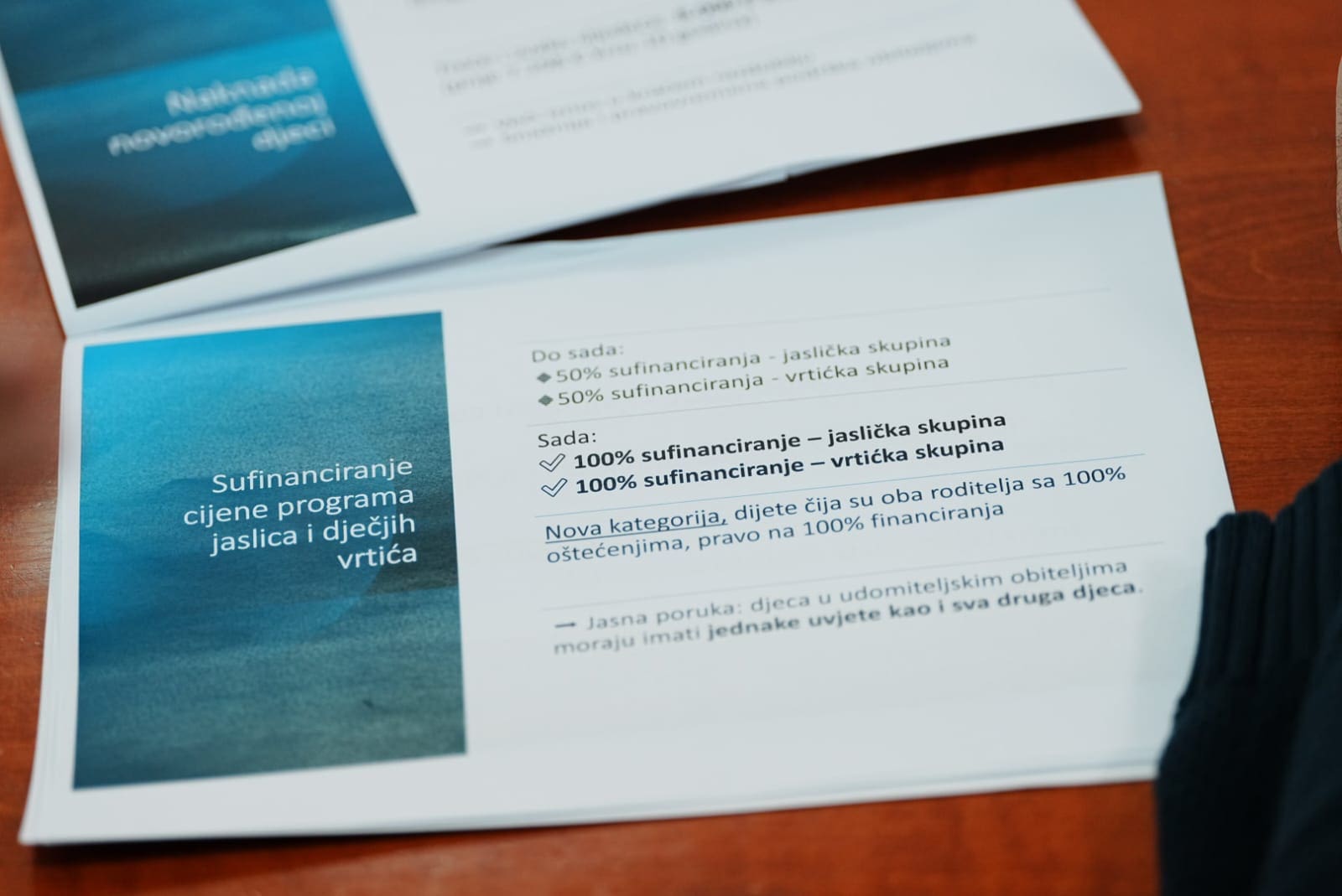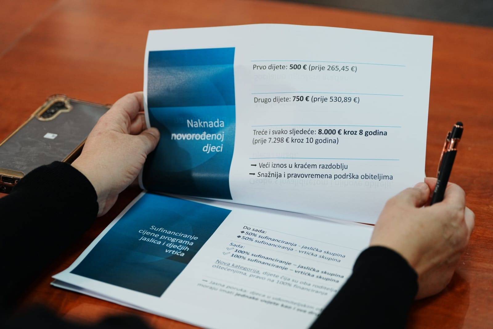 Nakon provedbe savjetovanja, prijedlog Odluke bit će upućen Gradskom vijeću na usvajanje. Jedna od ključnih novosti odnosi se na povećanje naknada za novorođenu djecu. Za prvo dijete naknada se povećava na 500 eura, dok za drugo iznosi 750 eura. Najveća promjena tiče se trećeg i svakog sljedećeg djeteta: umjesto dosadašnjeg modela, predviđena je potpora od 8.000 eura kroz osam godina. Ranije je ukupan iznos bio 7.298 eura, raspoređen kroz deset godina.