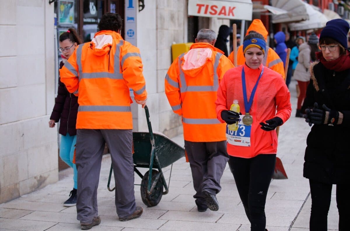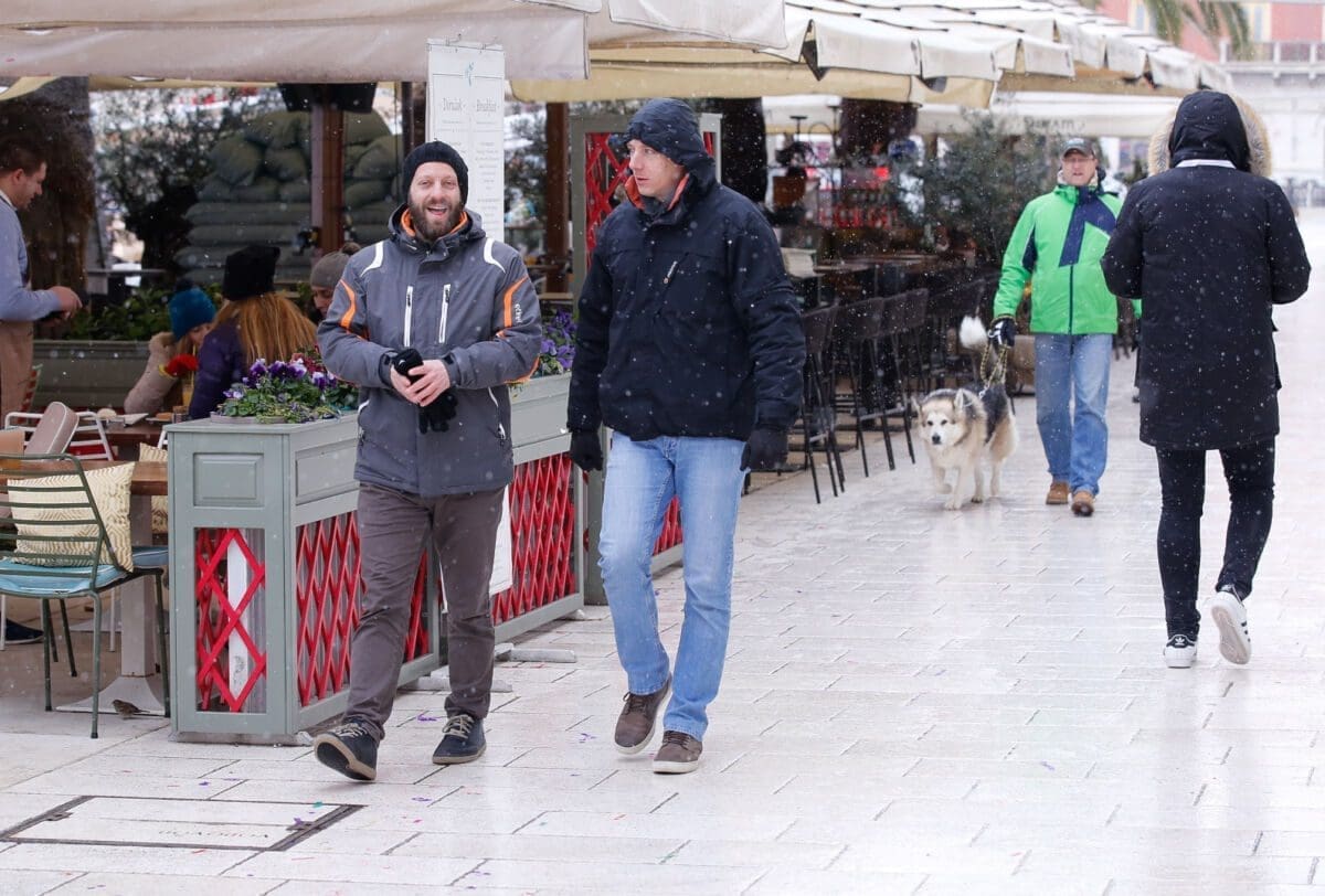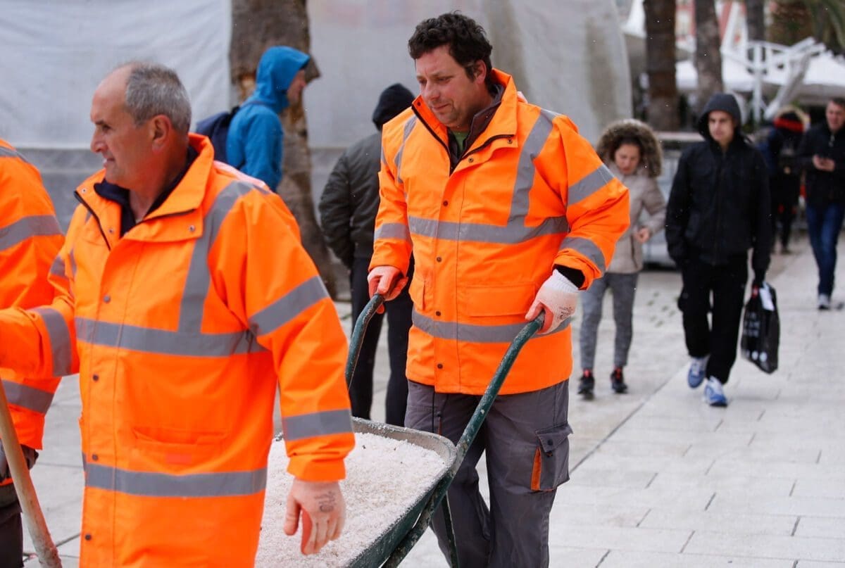Zadnjih sati dežurne službe posipaju sol po Rivi i Marmontovoj, a sudeći prema reakcijama građana, sol je samo otežala hodanje. Naš fotoreporter vidio je kako se građani spotiču na površine na koje je lopatama nabacana sol, a i sam je zamalo pao dok je hodao po Rivi.