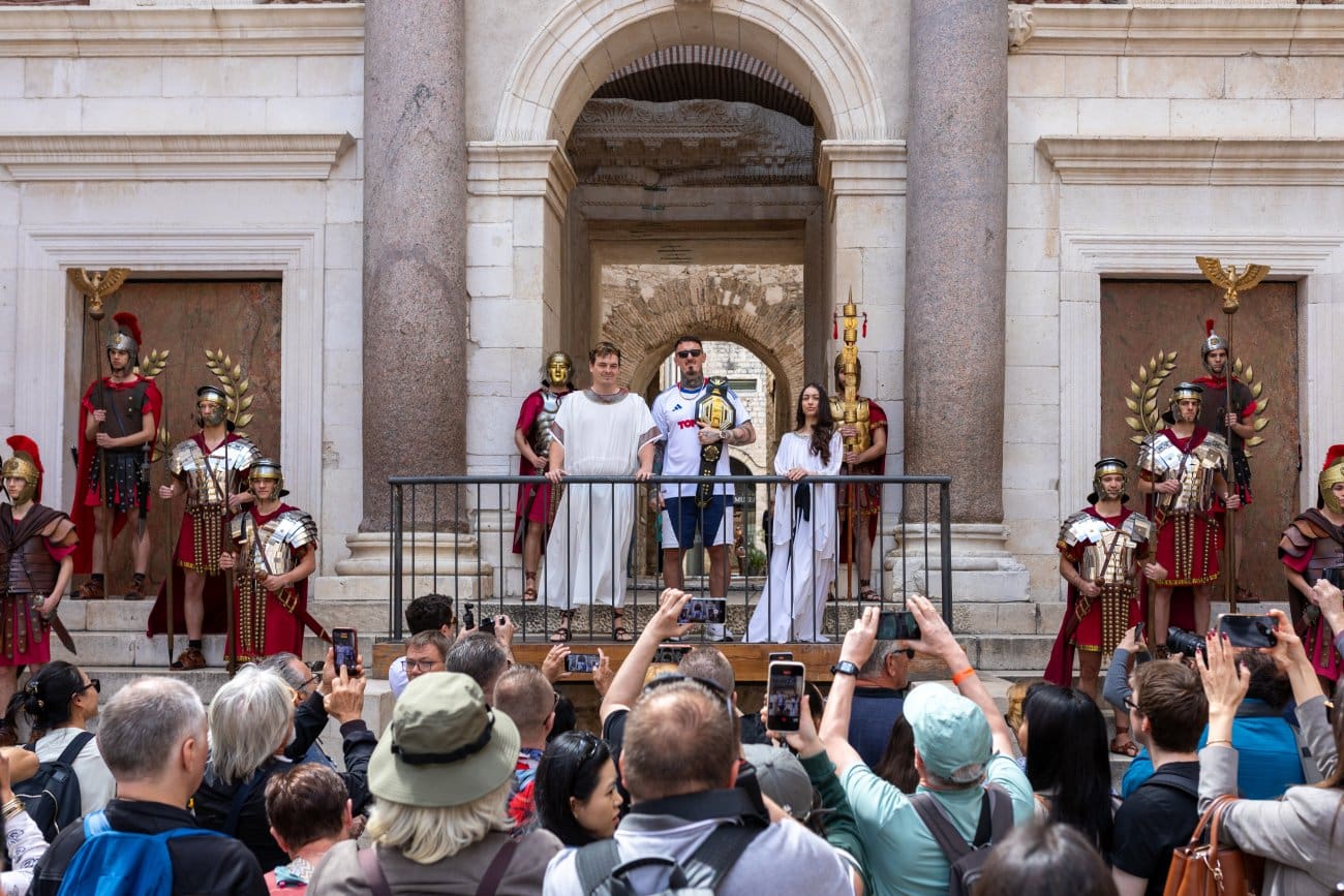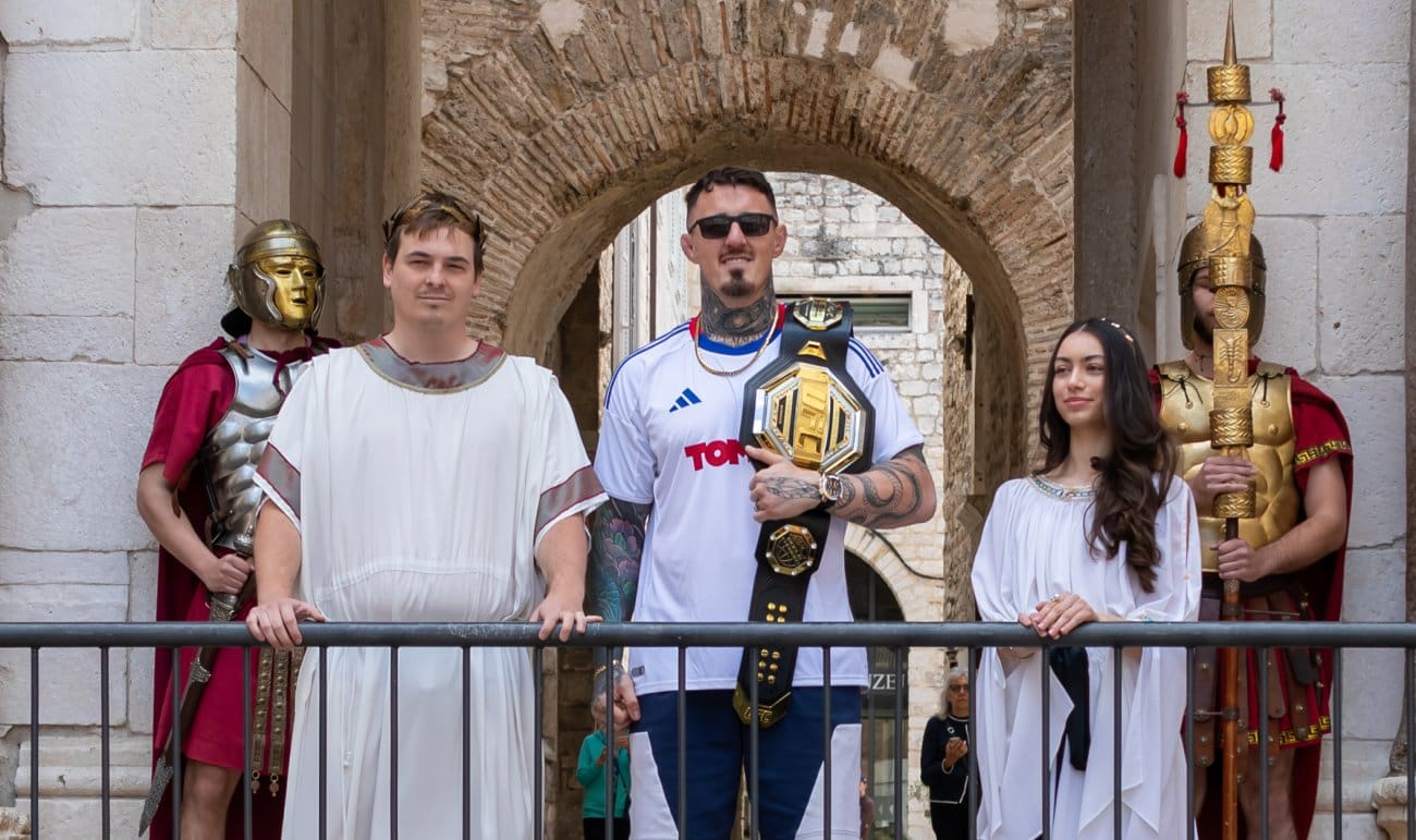 Posebnu pažnju javnosti već u jutarnjim satima izazvao je dolazak UFC prvaka teške kategorije Tom Aspinall, jednog od najvećih borilačkih imena današnjice. Aspinall je najprije posjetio stadion Poljud, gdje mu je uprava HNK Hajduka uručila dres Hajduka s brojem 1, što je izazvalo veliko oduševljenje navijača i medija. Uslijedio je atraktivan dolazak na Peristil, gdje ga je dočekala Dioklecijanova straža u jedinstvenom ambijentu antičkog Splita – prizor koji je obišao društvene mreže i medije.