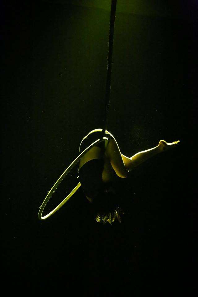 - Tijelo koje se pokreće zbog zvuka, i Zvuk koji se mijenja zbog pokreta. Ono što počne kao nadmetanje i igra dominacije, preraste u suradnju i koegzistenciju u kojoj ni jedno ne postoji bez onog drugog. Cilj istraživanja je kombinirati tehniku odnosno pokret u cirkuskoj disciplini zračnog prstena (aerial hoop-a) i tehniku stvaranja zvuka. Zvučna kulisa je improvizacija koja se sastoji od distorziranja zvučnog signala kroz gitarske efekte i oscilatore. Uz gitaru se koriste analogni i digitalni sampleri i ritam mašina na način primjeren formi - kažu Dora i Mišo.