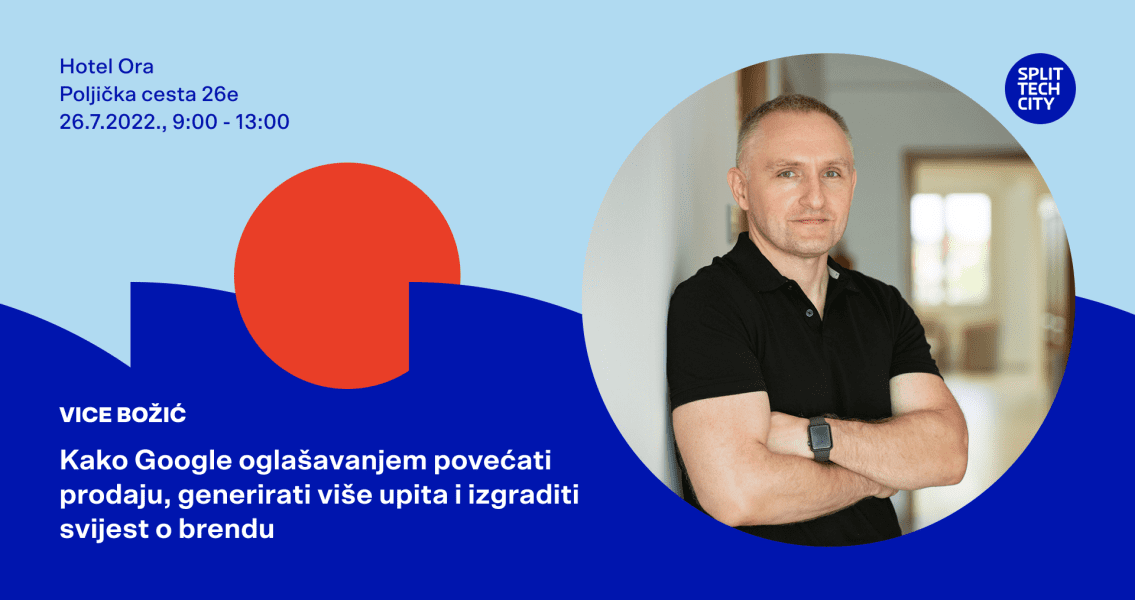 Split Tech City organizira radionicu Vice Božića „Kako Google oglašavanjem povećati prodaju, generirati više upita i izgraditi svijest o brendu“, koja će se održati 26.7.2022. (utorak) od 9 do 13 sati u Hotelu Ora (Poljička 26e).