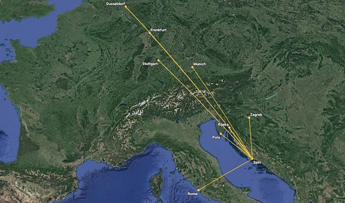 Zanimljivo, od 5 međunarodnih odredišta, čak četiri su u Njemačkoj te jedno u Italiji.