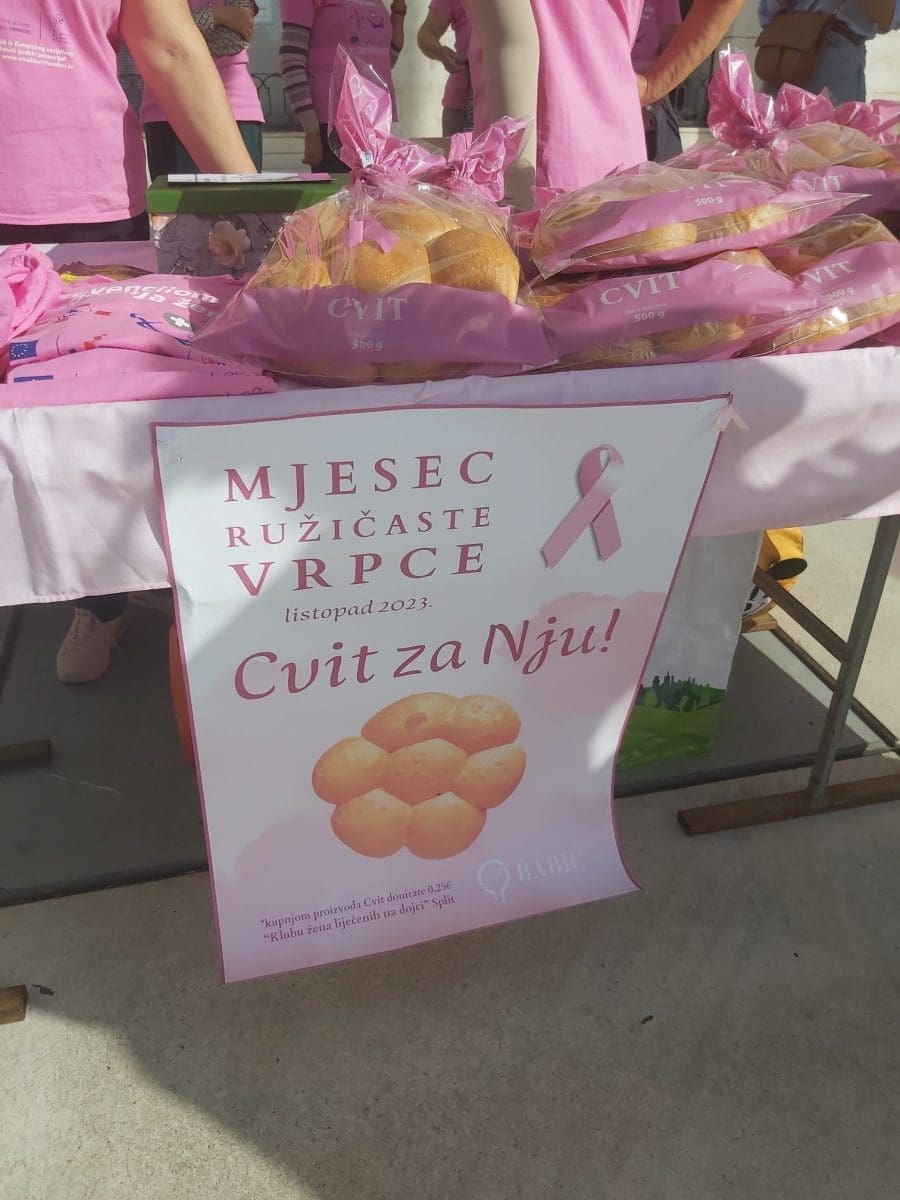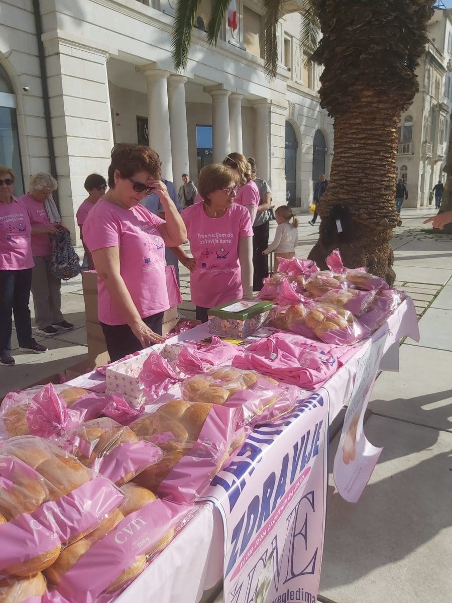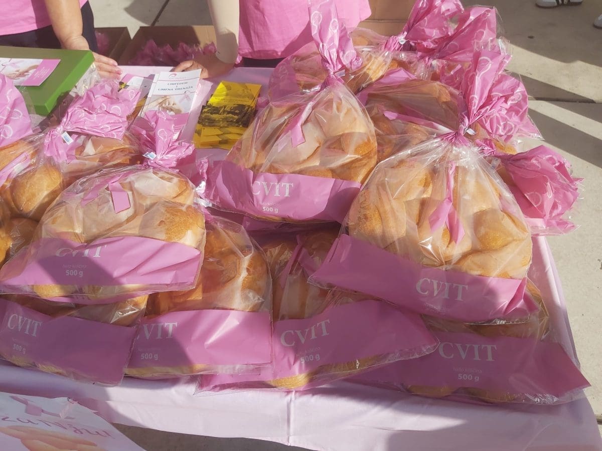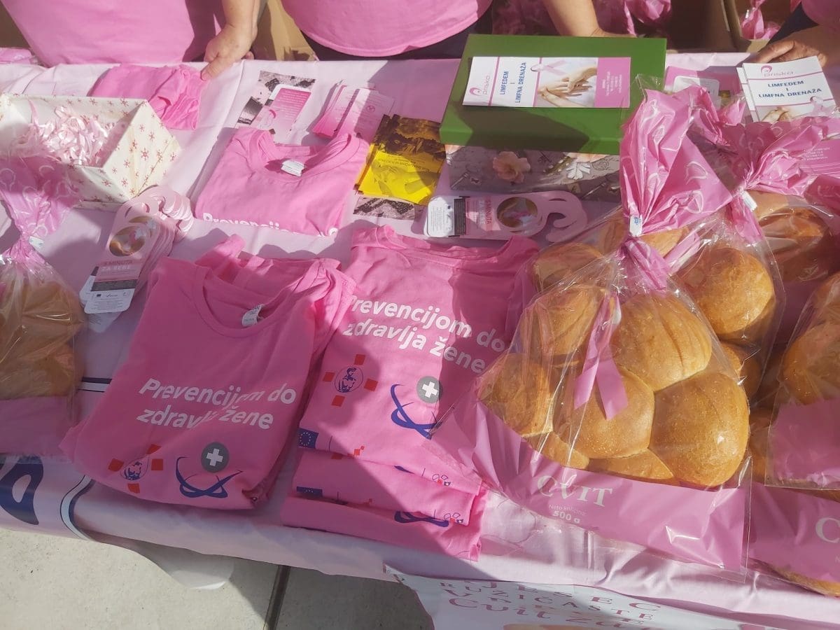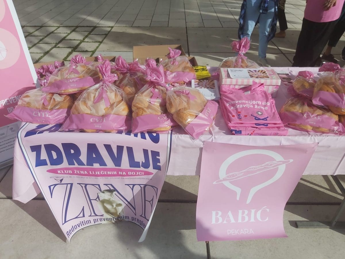 Za akciju im je pekara Babić donirala kruh, a u ponudi imaju i majice organizacije Kluba žena liječenih na dojci kao i vrpce u prepoznatljivoj rozoj boji, koja je zaštitna boja ovog pokreta od kada je Komen — vodeća svjetska organizacija za borbu protiv raka dojke — odlučila koristiti ružičastu boju od svog osnutka 1982. godine. Princip akcije i prikupljanja donacija na današnjem štandu je da platiš koliko možeš.