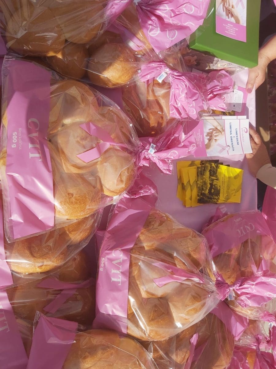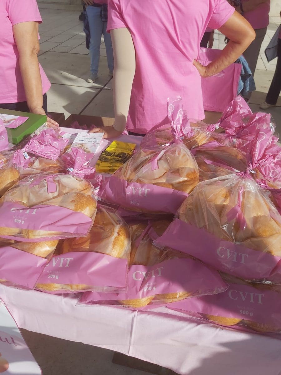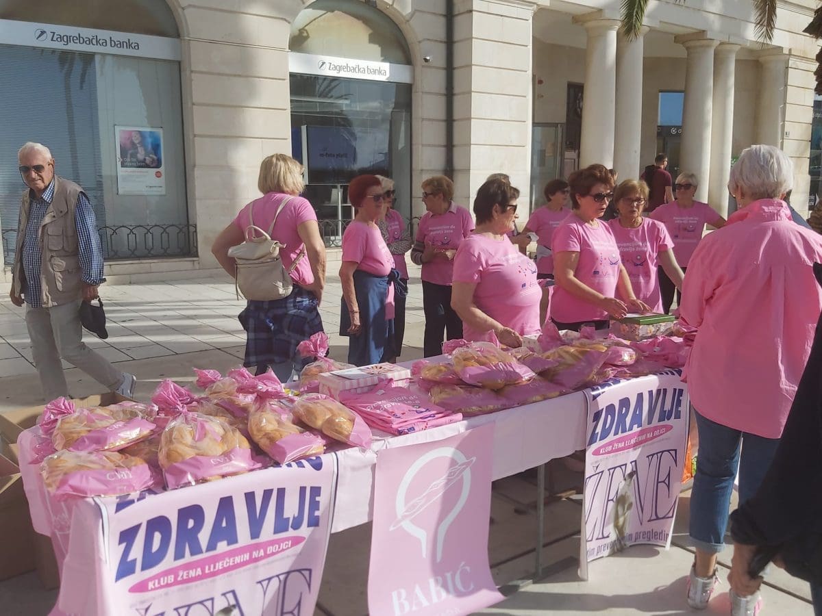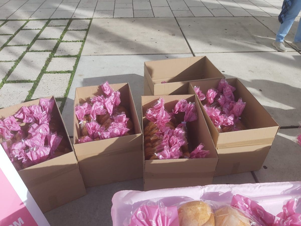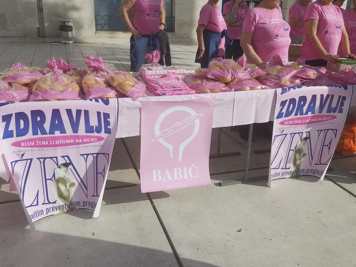 Za akciju im je pekara Babić donirala kruh, a u ponudi imaju i majice organizacije Kluba žena liječenih na dojci kao i vrpce u prepoznatljivoj rozoj boji, koja je zaštitna boja ovog pokreta od kada je Komen — vodeća svjetska organizacija za borbu protiv raka dojke — odlučila koristiti ružičastu boju od svog osnutka 1982. godine. Princip akcije i prikupljanja donacija na današnjem štandu je da platiš koliko možeš.
