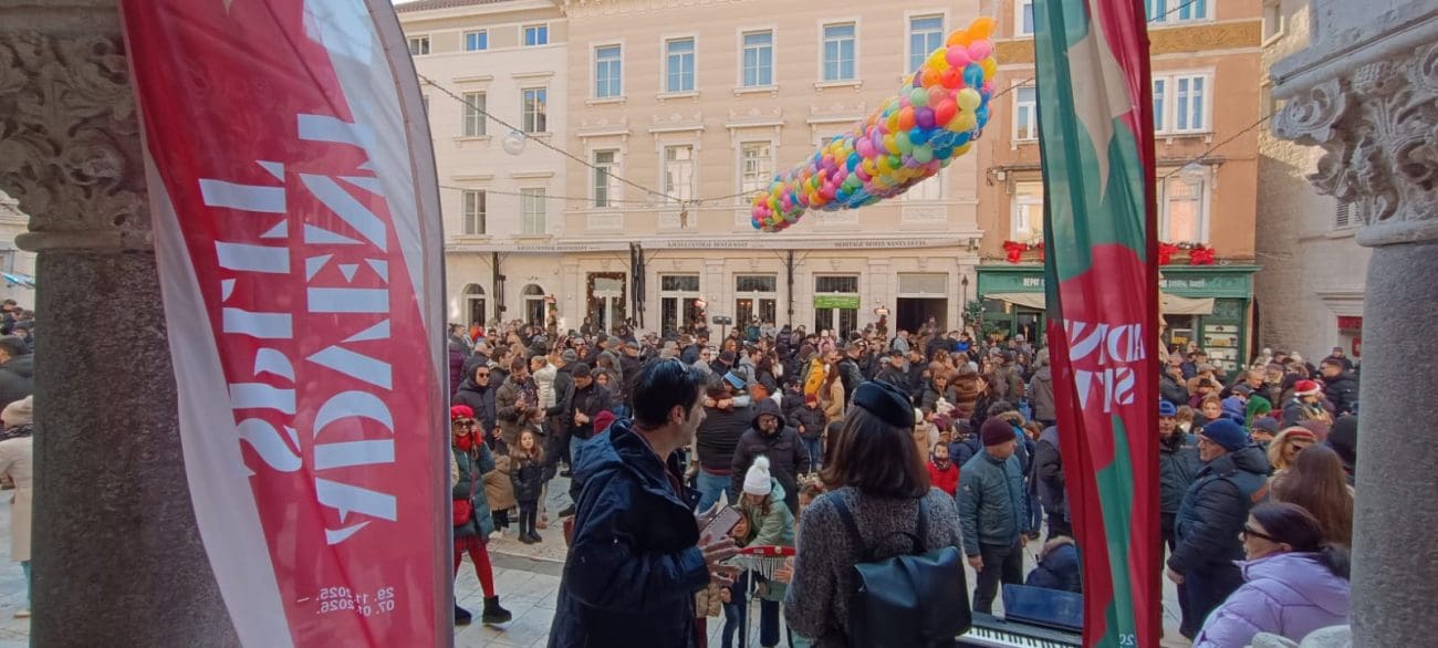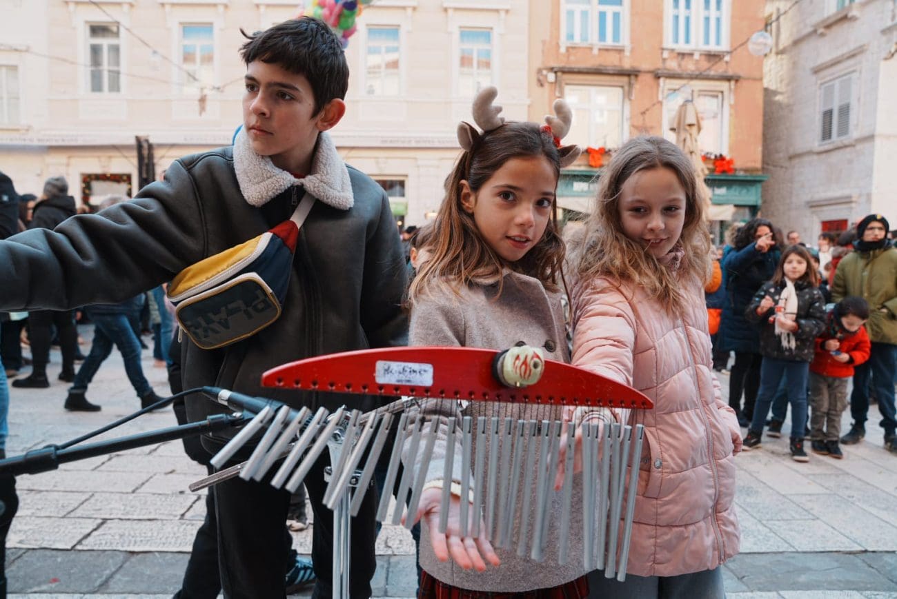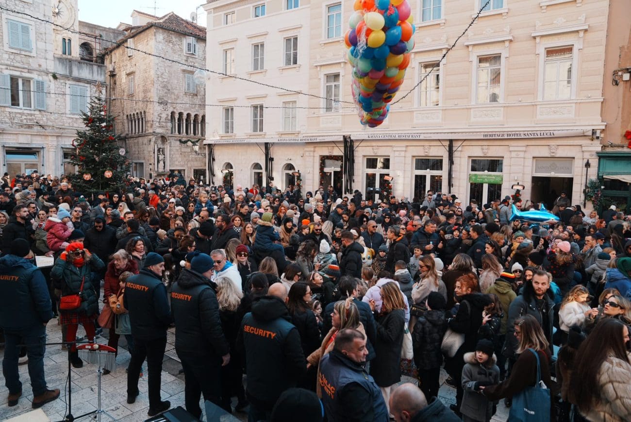 Točno u 13 sati na Pjaci je i službeno ispraćena Stara godina, i to na način koji je u Splitu već postao tradicija – po danu, uz glazbu, smijeh i druženje u samom srcu grada. Vesela atmosfera zavladala je centrom, a blagdanski šušur osjeća se doslovno na svakom koraku.