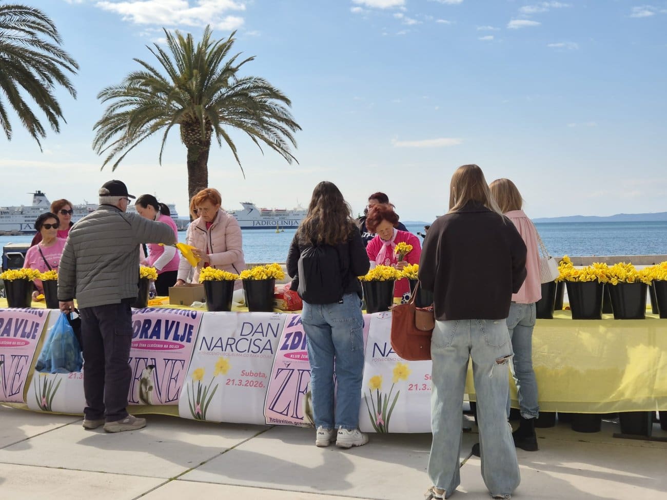 Ove subote Split je bio obojen u ružičasto-zlatne tonove narcisa, cvijeta koji simbolizira borbu protiv raka dojke. Na Rivi, u blizini Marmontove ulice, održano je tradicionalno obilježavanje Dana narcisa – događaja koji podsjeća na važnost prevencije i ranog otkrivanja ove bolesti.